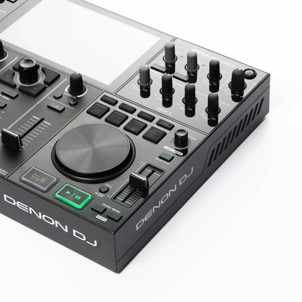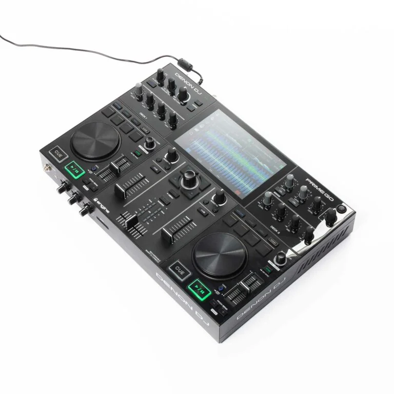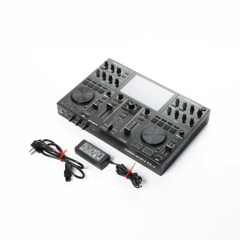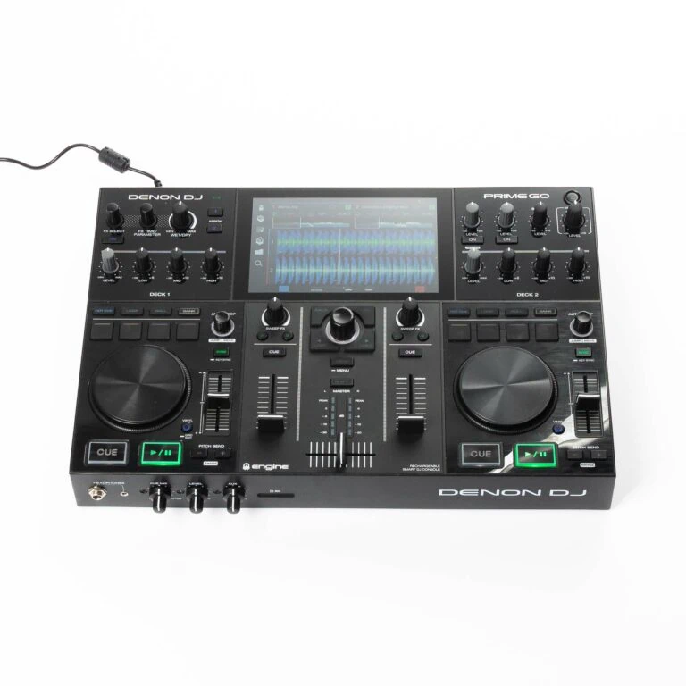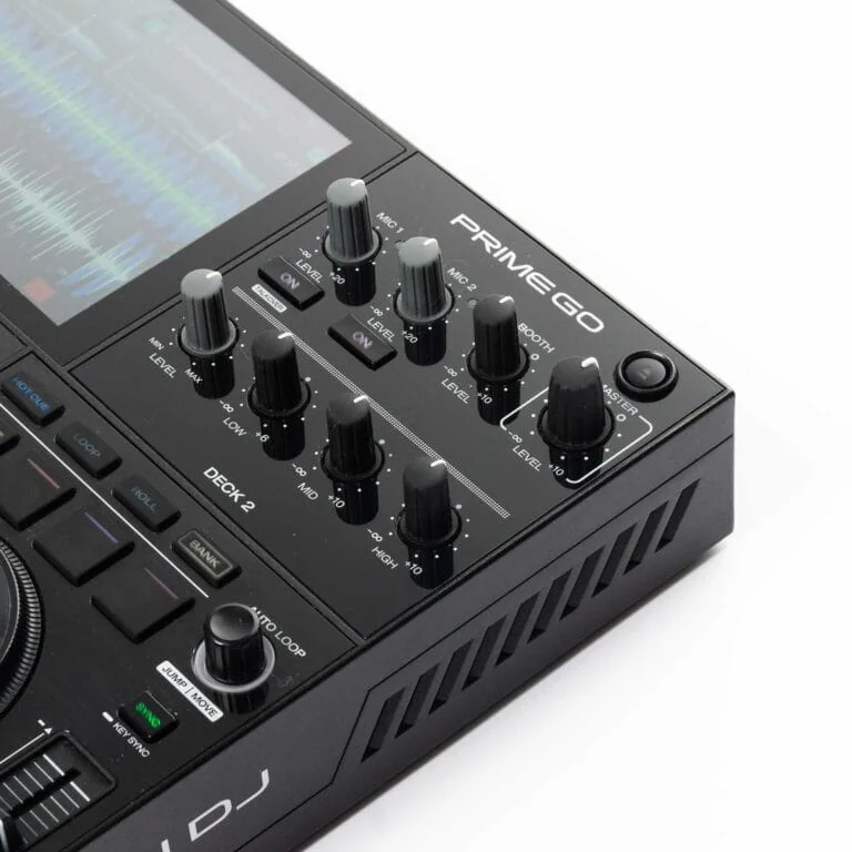 Der Denon DJ Prime Go ist ein standalone DJ-Controller mit eingebautem Lithium-Ionen-Akku. Der 2-Kanal-Controller hat einen 7-Zoll Touchscreen, welcher mit Multigesten gesteuert werden kann. Somit kannst du z.B. ganz einfach durch deine Bibliothek browsen. Außerdem lässt sich die Wellenform-Ansicht von horizontal bis zu vertikal ändern. Jeder Kanal bringt einen 3-Band-EQ, Beat-Effektmodul, Sweep- und Filter-FX, ein Jogwheel und vier Perfomance Pads. Zusätzlich läuft der Denon DJ Prime Go auf der Engine OS und bringt die Möglichkeit sich mit dem WLAN zu verbinden und Tracks ohne Computer aus dem Internet zu streamen.