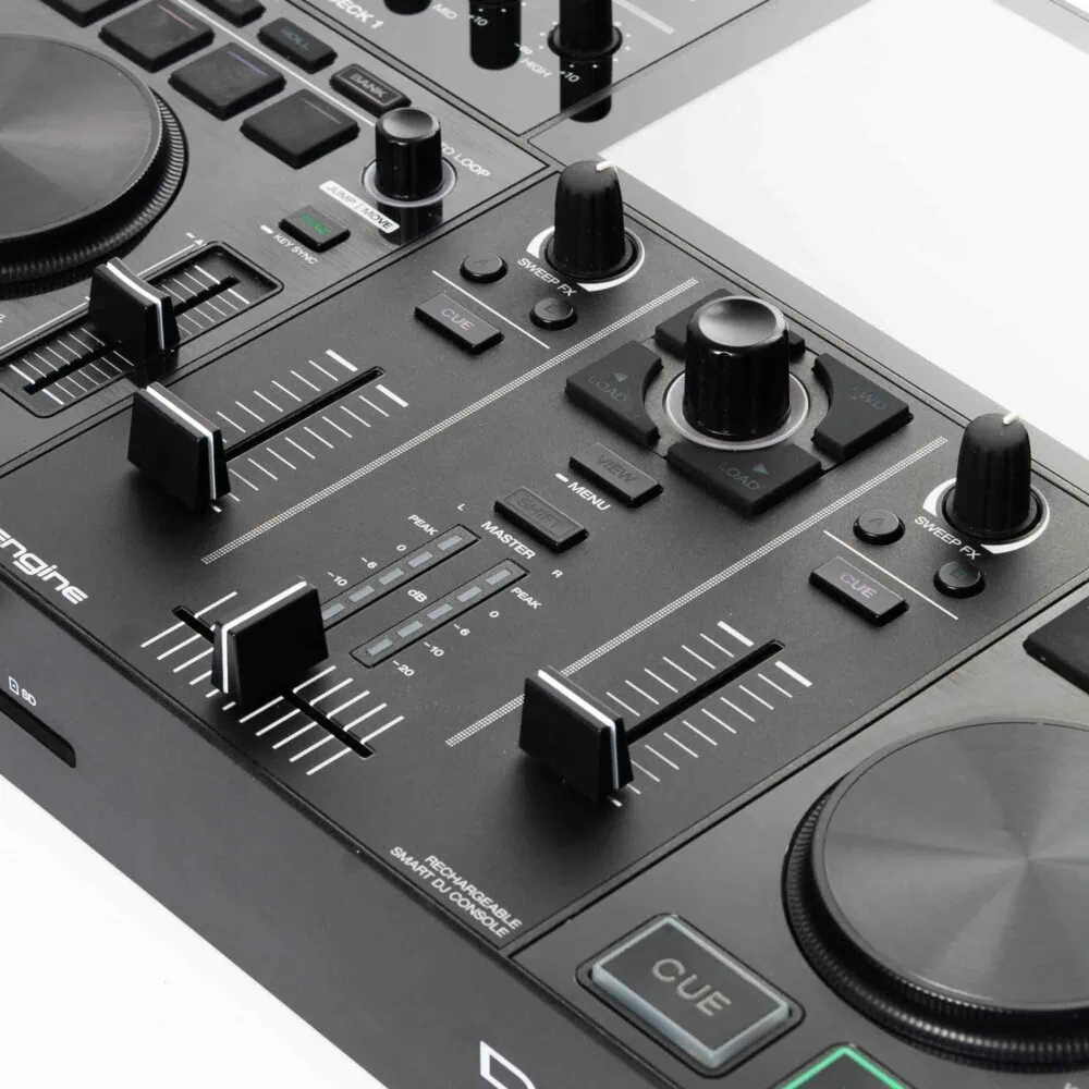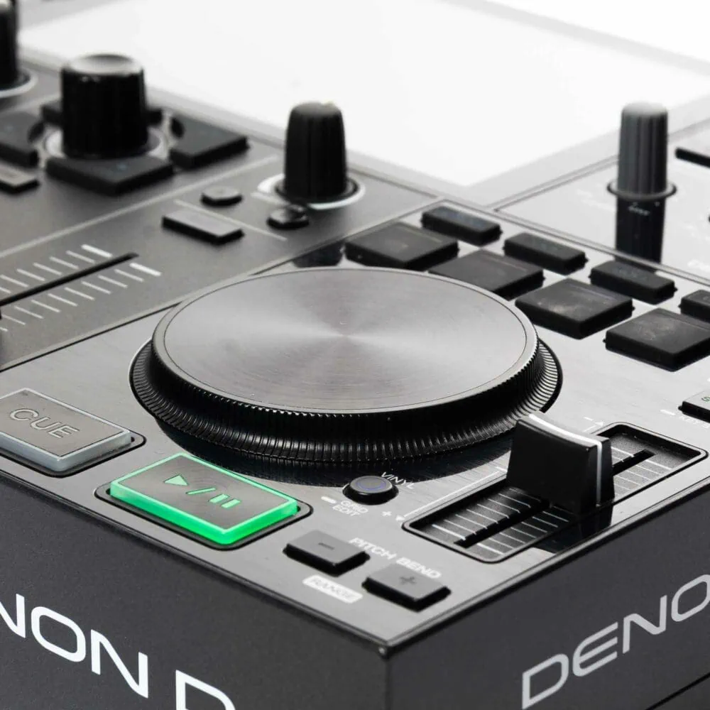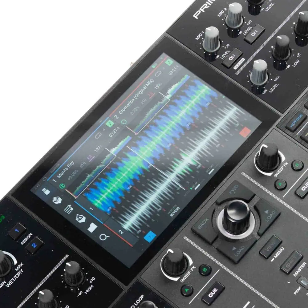 Der Denon DJ Prime Go ist ein standalone DJ-Controller mit eingebautem Lithium-Ionen-Akku. Der 2-Kanal-Controller hat einen 7-Zoll Touchscreen, welcher mit Multigesten gesteuert werden kann. Somit kannst du z.B. ganz einfach durch deine Bibliothek browsen. Außerdem lässt sich die Wellenform-Ansicht von horizontal bis zu vertikal ändern. Jeder Kanal bringt einen 3-Band-EQ, Beat-Effektmodul, Sweep- und Filter-FX, ein Jogwheel und vier Perfomance Pads. Zusätzlich läuft der Denon DJ Prime Go auf der Engine OS und bringt die Möglichkeit sich mit dem WLAN zu verbinden und Tracks ohne Computer aus dem Internet zu streamen.