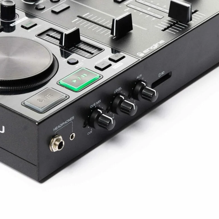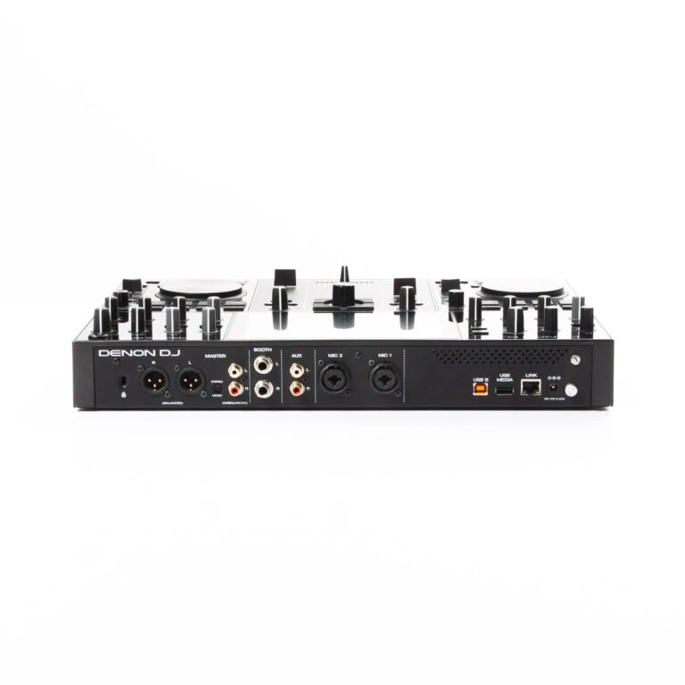- Ausgänge: 1x Master (Stereo XLR), 1x Master (Stereo Cinch), 1x Booth (Stereo 6,3 mm Klinke), 1x Aux (Stereo Cinch), 1x Phones (6,3 mm Klinke), 1x Phones (3,4 mm Klinke)