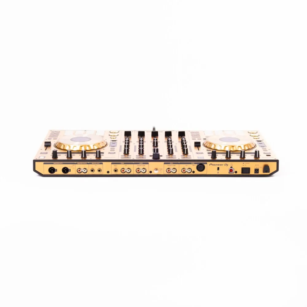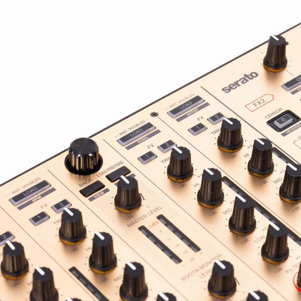 - Ausgänge: 1x Master Out (Cinch), 1x Master Out (XLR), 1x Booth (6,3 mm Klinke), 1x Kopfhörer (6,3 mm Klinke), 1x Kopfhörer (3,5 mm Klinke)