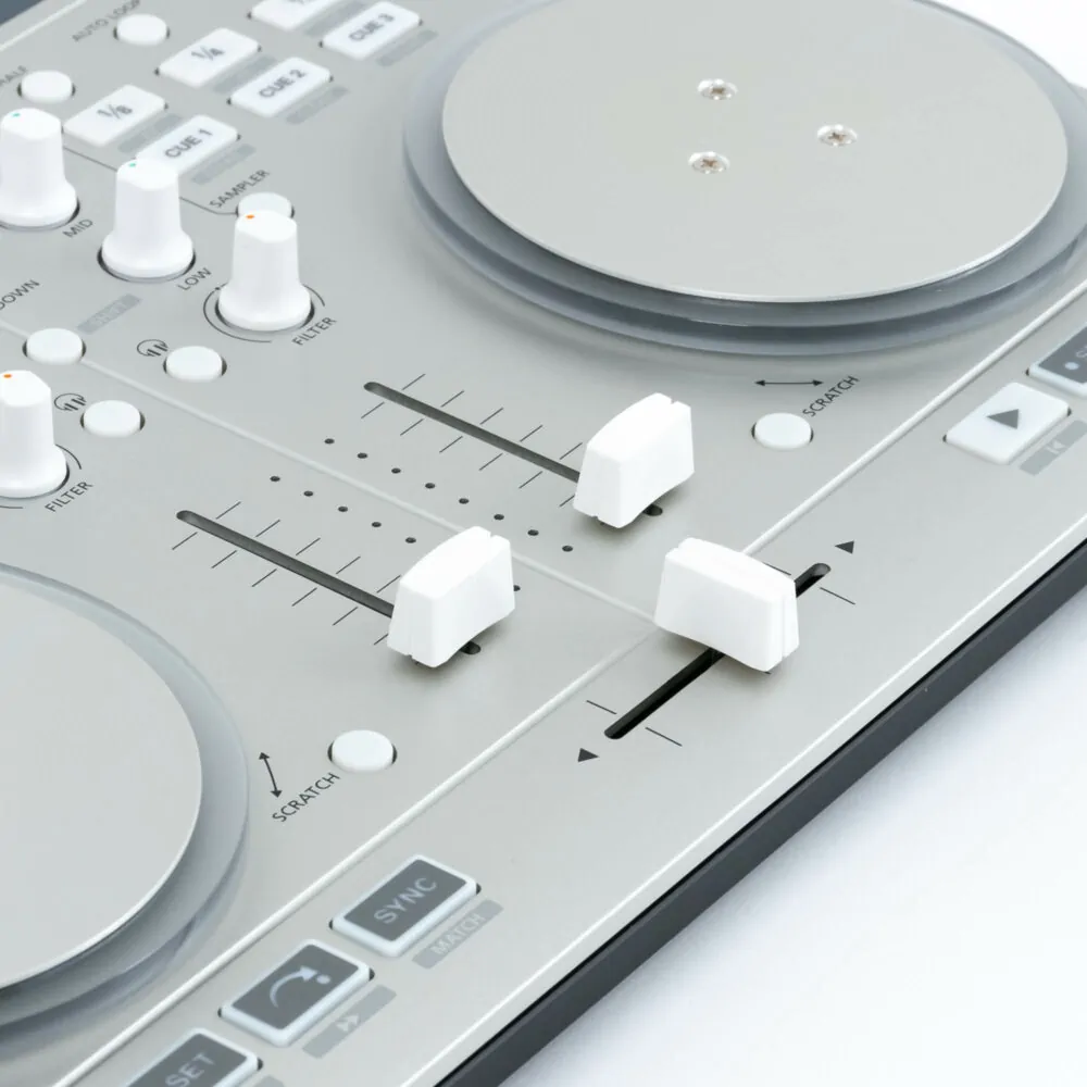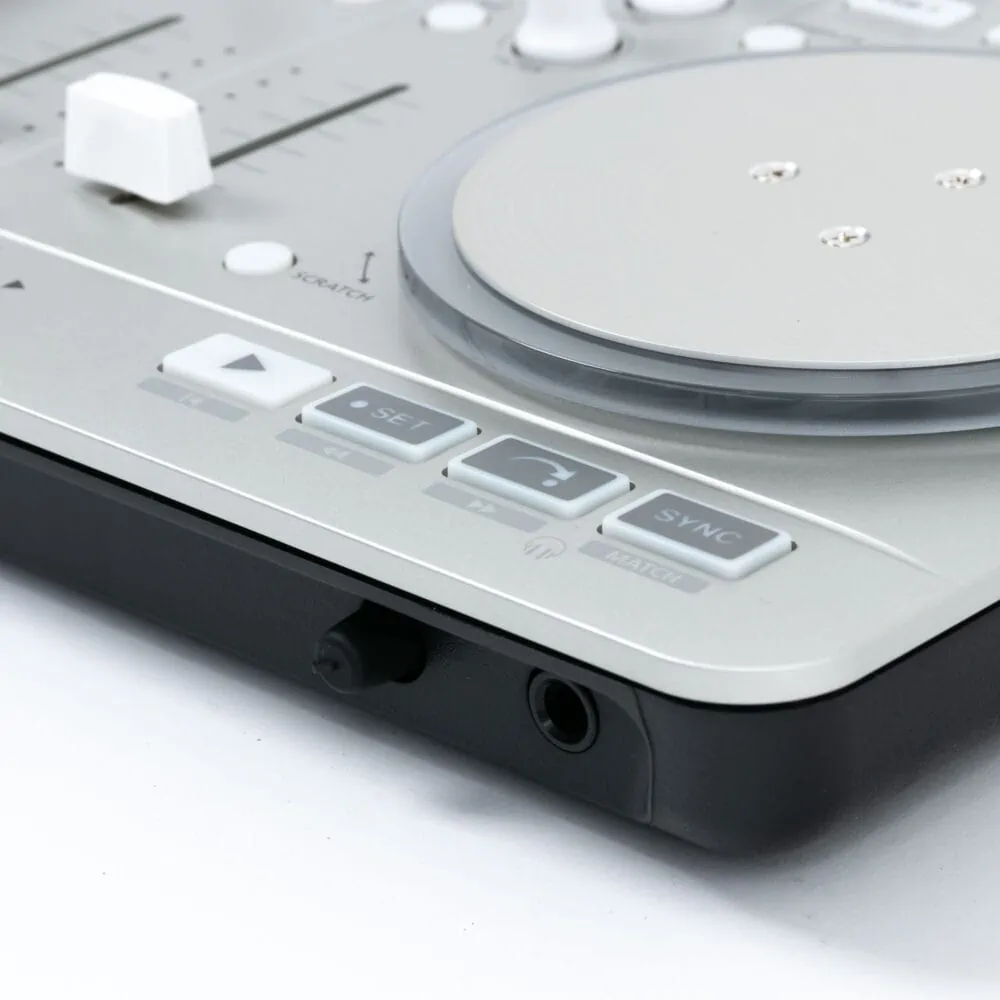 Der Vestax Spin 2 ist ein 2-Kanal-DJ-MIDI-Controller, der für Mac- und iOS-Nutzer designed wurde. Der Controller besitzt eine integrierte USB-Soundkarte mit Kopfhörer- und Masterausgang, ist MIDI-kompatibel über USB oder 30-Pin-Stecker und unterstützt mehrere Kanäle für iOS6-Geräte. Dabei wird die Musik durch die iTunes Library bezogen und über die iCloud kannst du auch losgelöst von deinem Computer auflegen! Dank Cue-Punkten, Loops und FX, kannst du mit diesem kleinen aber feinen Controller schon echte DJ-Skills erlernen! Leider ist dieses Produkt nicht kompatibel mit Windows.
