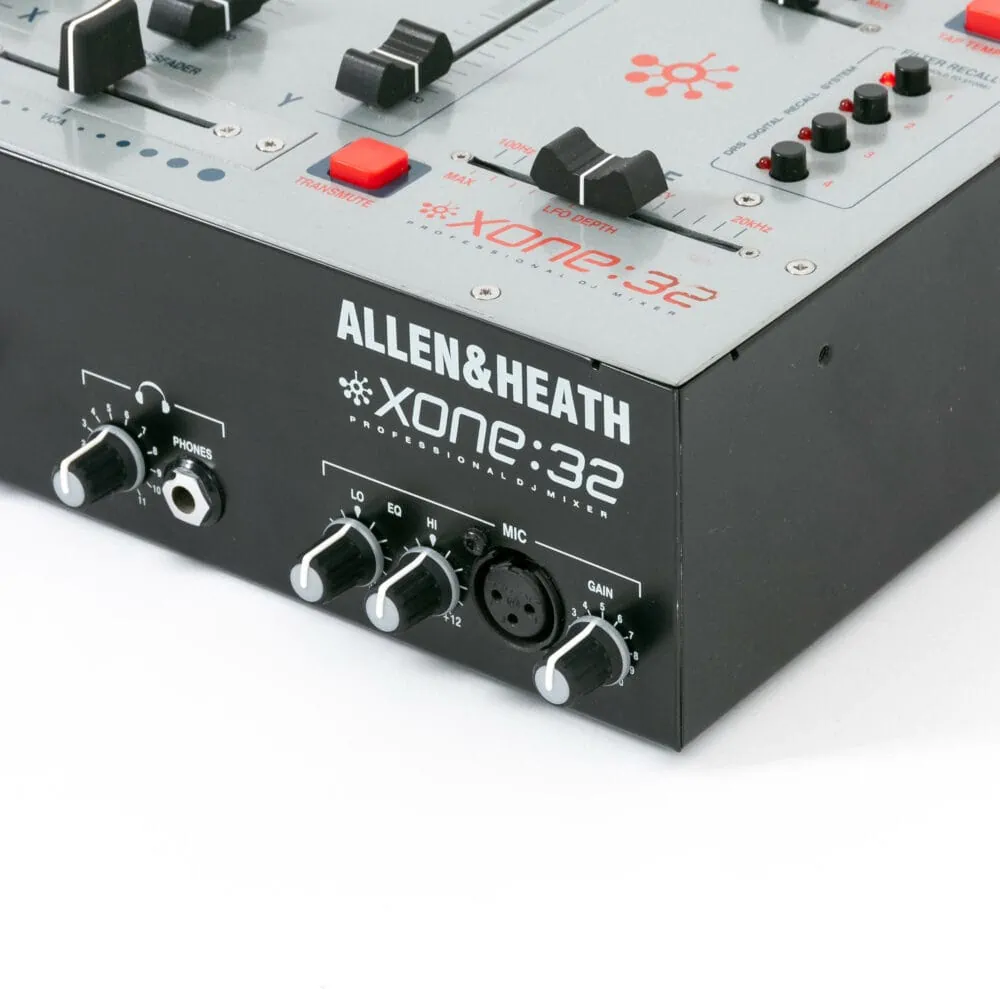 Der Allen & Heath Xone 32 ist ein 3-Kanal-Mixer und bringt die vertrauten Allen & Heath Features. So finden sich in dem kleinen Gehäuse der Allen & Heath VCF mit Hi-, Band- und Low-Pass Optionen, Resonanzkontrolle und ein über Tap steuerbarer LFO. Dank der Digital Recall Settings kannst du alle Filtereinstellungen speichern und jederzeit abrufen!