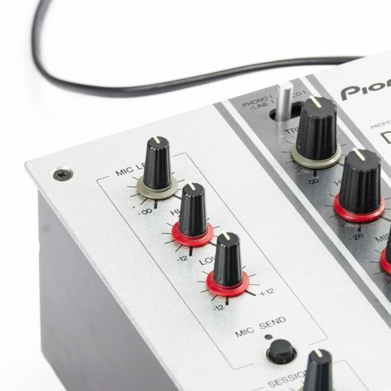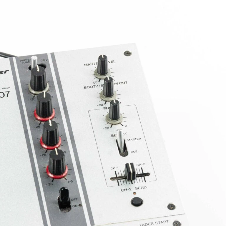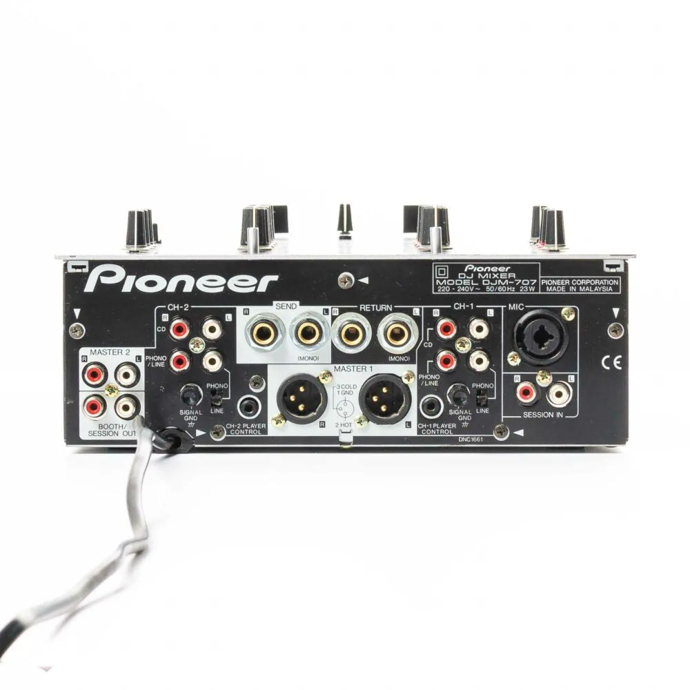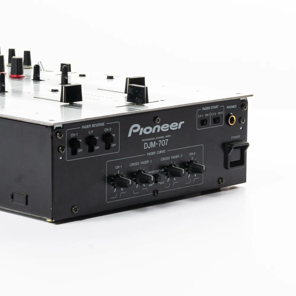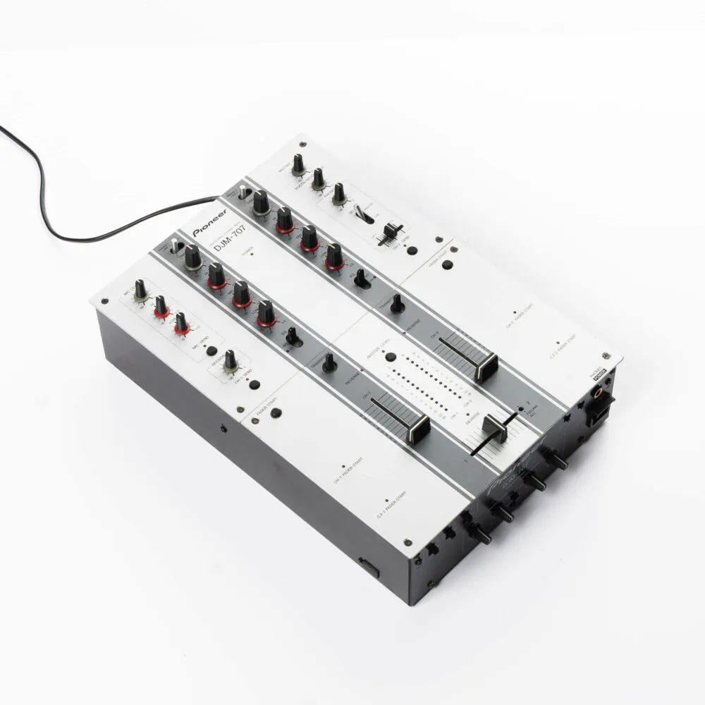 Der Pioneer DJ DJM 707 ist ein 2-Kanal-Mixer im Retrostil. Der Battlemixer bringt einen präzisen und effektiven Crossfader inklusive doppelter Fadercurve, sodass jede Hälfte des Faders individuell adjustiert werden kann. Jeder Kanal hat einen 3-Band-EQ mit soliden Potis und einen Tranform-Umschalter.