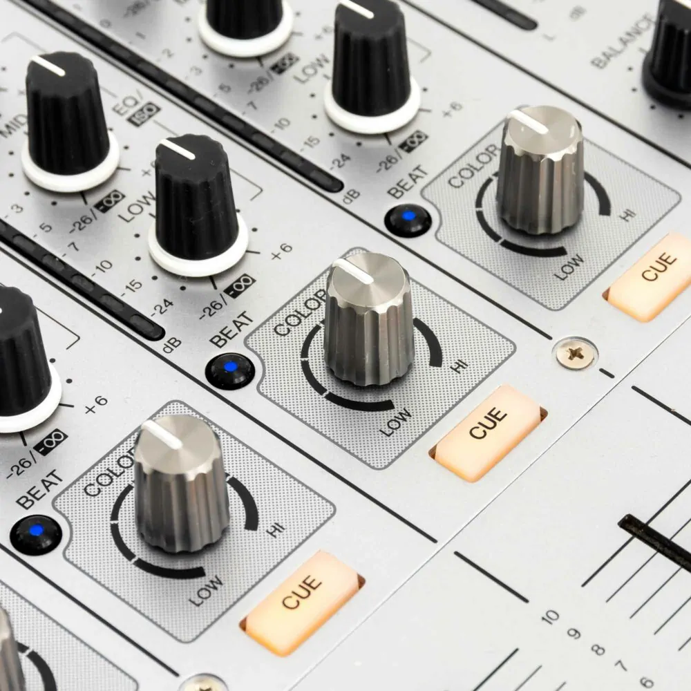 - Ausgänge: 1x Booth (6,3mm Klinke), 1x Kopfhörer (6,3mm Klinke), 1x Rec (Cinch), 1x Master (XLR), 1x Master (Cinch), 4x Control (Mini-jack), 1x Send (6,3mm Klinke)