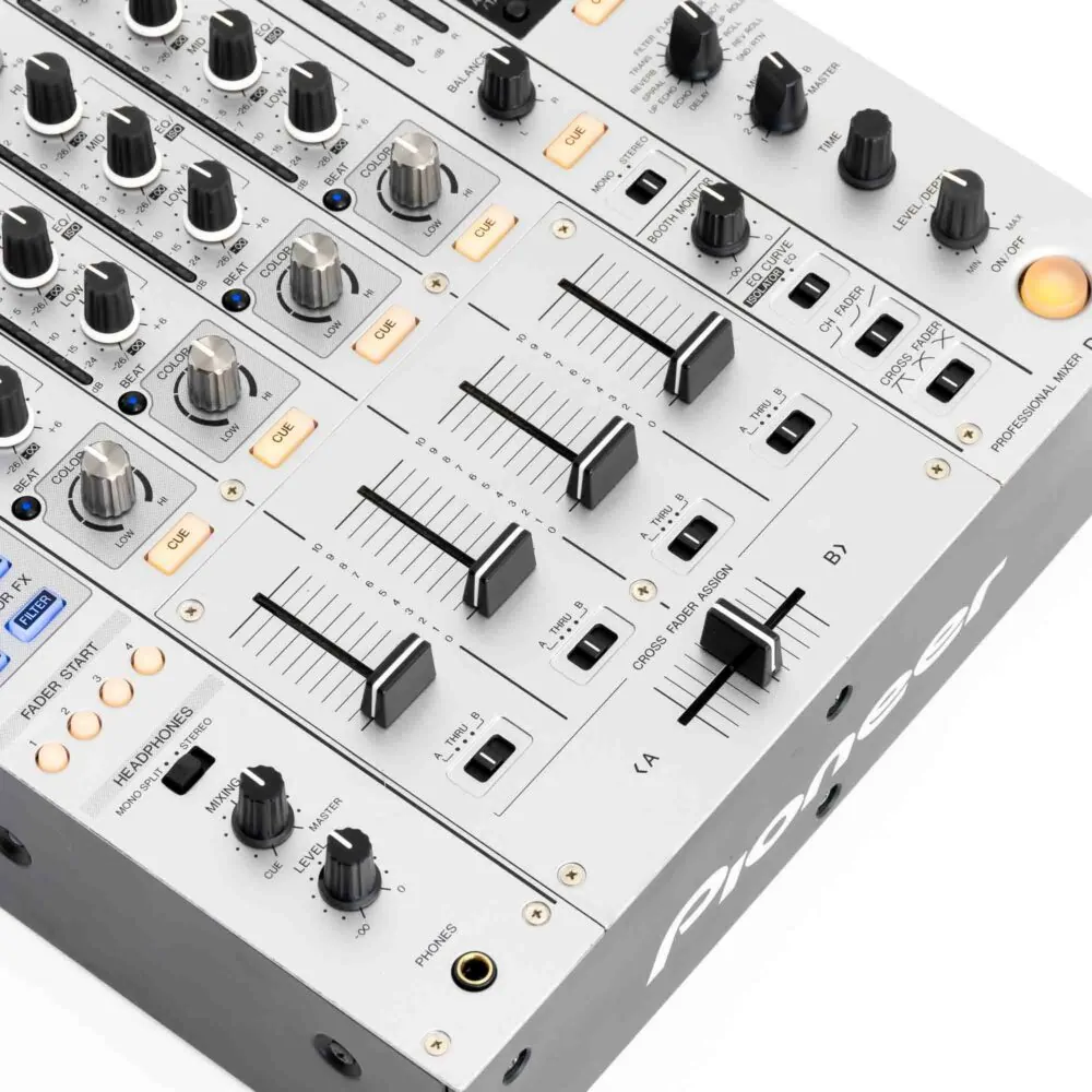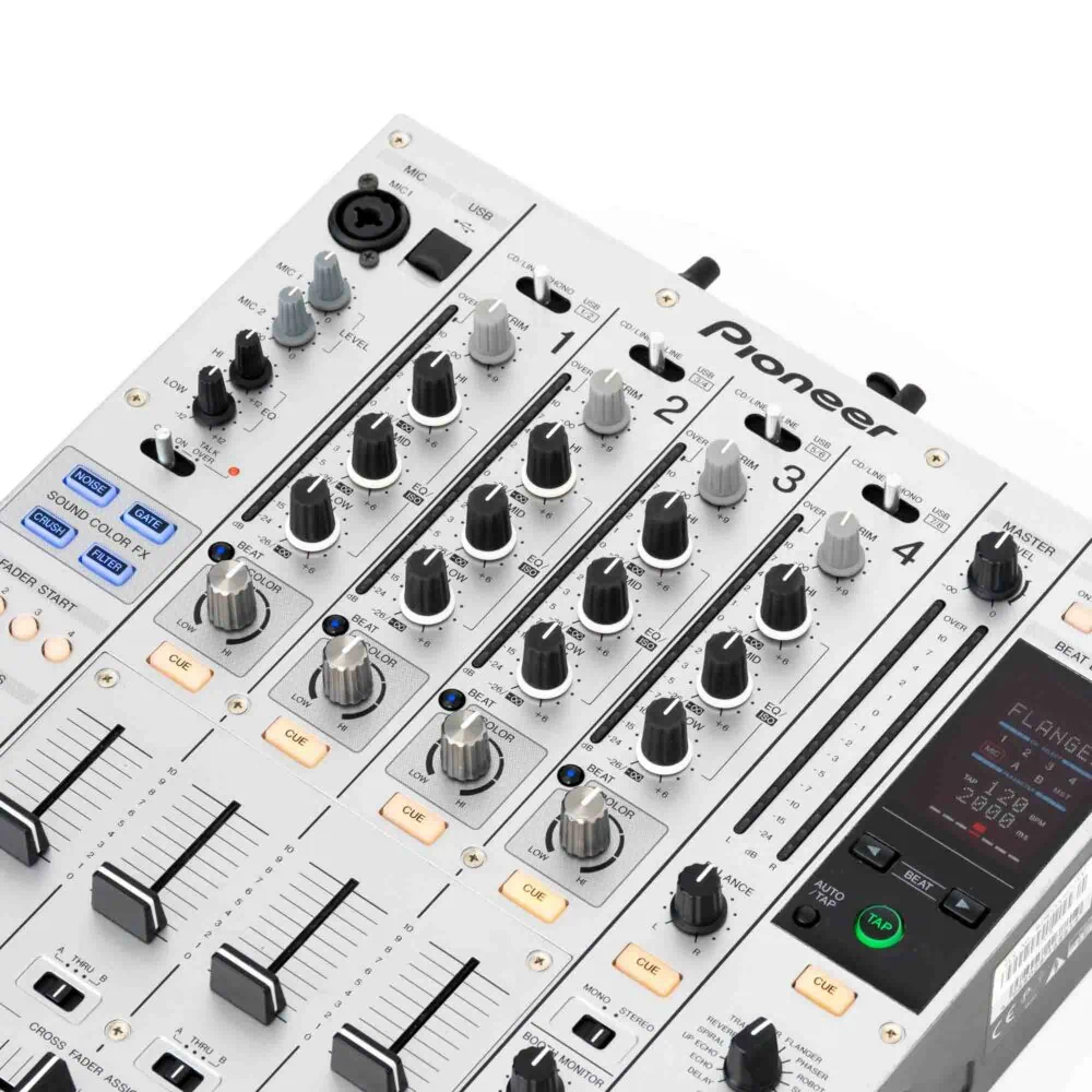 Der Pioneer DJ DJM 850 ist der kleine Bruder des Pioneer DJ DJM 900 NXS und stellt die light Version dieses dar. Er besitzt eine eingebaute USB-Soundkarte und eine hochwertige Soundqualität. Die 3-Bands-EQs und Color-FX bieten zusammen mit der umfangreichen Beat-FX-Sektion unzählige Möglichkeiten wie ein Profi aufzulegen! Zusätzlich besitzt der Pioneer DJ DJM 850 zwei Mikrofoneingänge.