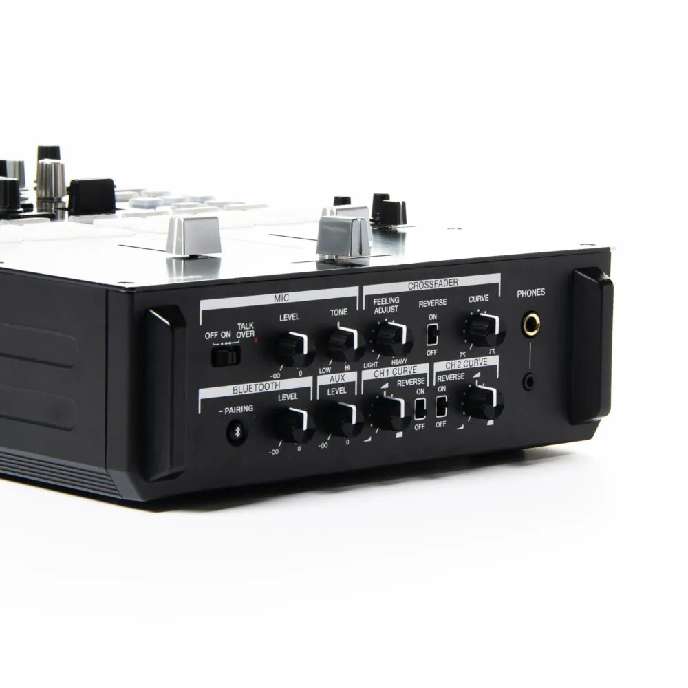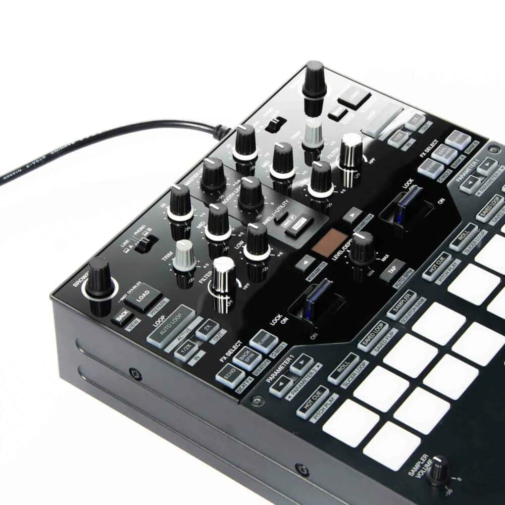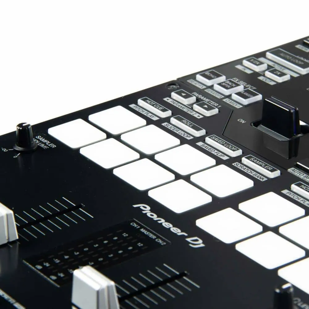 Der Pioneer DJ DJM S7 ist ein 2-Kanal-Battle-Mixer für alle die scratchen lieben. Er bringt ein übersichtliches Layout mit 16 Perfomance Pads inklusive unabhängigen Pad-Modi, Effekthebeln wie man sie vom Pioneer DJ DJM S9 kennt, 22 Beat-FX und natürlich einen Magvel-Fader Pro, damit deine Fades beim Scratchen ganz geschmeidig bleiben. Dank der großen Load-Taste kannst du deine Tracks im Nu laden. Combo Pad-Modus, Scratch Bank und Gate Cue machen den Pioneer DJ DJM S7 noch einzigartiger! Dank der Loop-MIDI Funktion lassen sich über Effekthebel MIDI-basierte Signale an Serato DJ Pro oder recordbox senden. Mit diesem Mixer steht deinem DJ-Battle nichts im Wege!