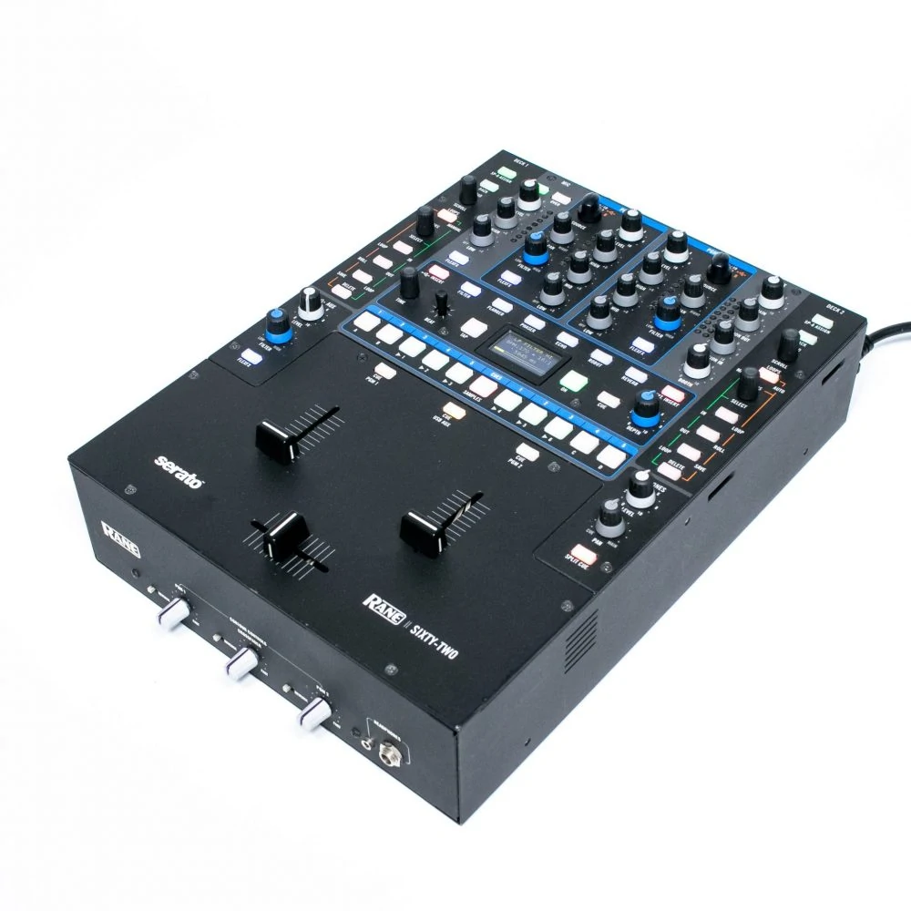 Der Rane Sixty-Two ist ein professioneller 2-Kanal-Battlemixer, der speziell für die Nutzung mit Serato entwickelt wurde. Er besitzt ganz klassisch zwei Kanäle und die Möglichkeit Serato-Features wie z.B. Cues direkt zu steuern. Durch die zwei USB-Anschlüsse können DJ-Wechsel nahtlos erfolgen. Durch die verfügbaren Core- und Asio-Treiber kann der Mixer auch mit anderer Software verwendet werden.