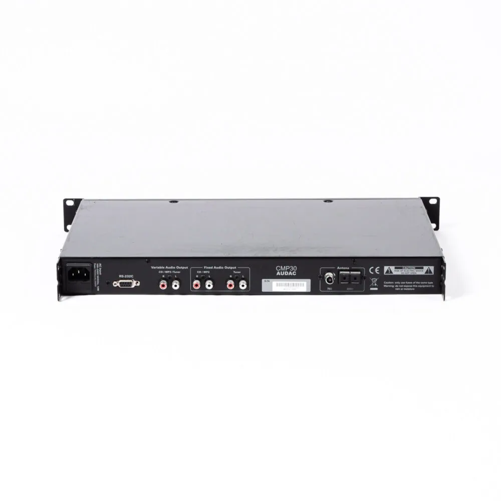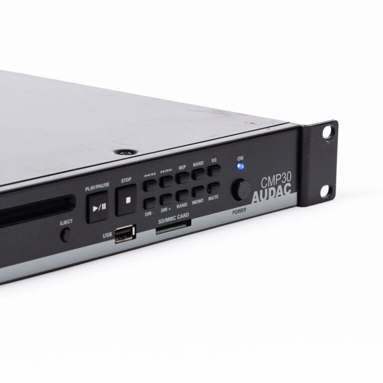 Der Audac CMP30 ist ein Mediaplayer für professionelle Audio-Installationen. Er spielt Musik von verschiedenen Quellen wie USB-Sticks, SD-Karten oder vom Radio ab und bietet eine intuitive Benutzeroberfläche. Der CMP30 ist robust und kompakt, einfach anzuschließen und bietet erweiterte Funktionen wie die gleichzeitge Verwendung von CD- und MP3-Player