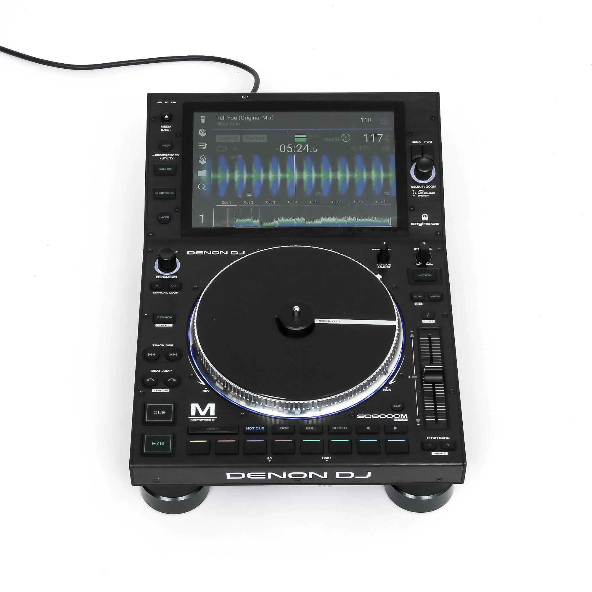 Der Denon DJ SC6000 M Prime ist der mächtige Nachfolger des Denon DJ SC5000 M Prime. Der DJ Media Player bringt ein HD 10,1″ Touchscreen inklusive Multigesten-Support, über welches Tracks gesucht und geladen, sowie die analysierten Waveforms angezeigt werden können. Der Hingucker des standalone-fähigen Players ist ein 8,5″ großer motorisierter Plattenteller mit Drehmoment-Anpassung, welcher das Gerät sowohl durch Optik als auch Handhabung einem digitalen Plattenspieler noch ähnlicher macht. Nicht nur Beat-Matching, sondern auch harmonisches Mixing ist mit dem Denon DJ SC6000 M Prime dank sofortiger Tonart-Angleichung kein Problem mehr. Die hochwertig gummierten Perfomance Pads wie man sie von seinem Vorgänger kennt, ermöglichen auch hier super dynamisches Auflegen ganz nach deinem Geschmack!