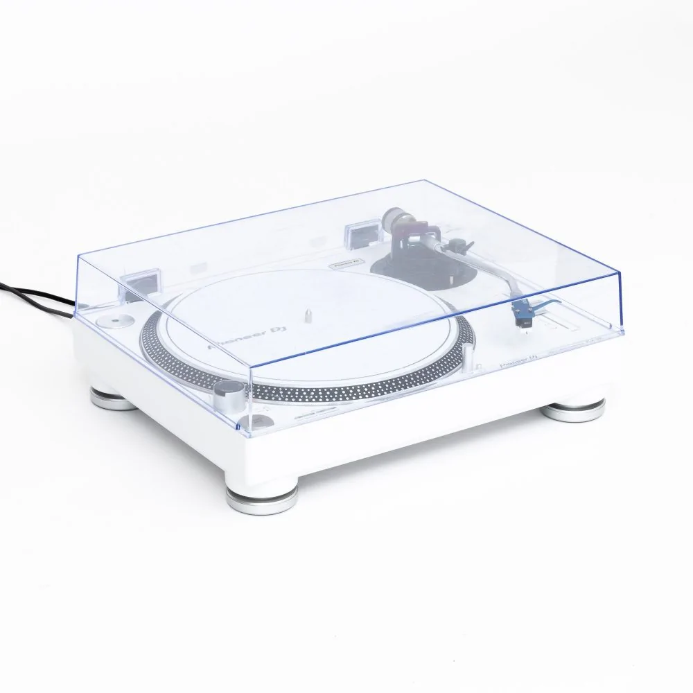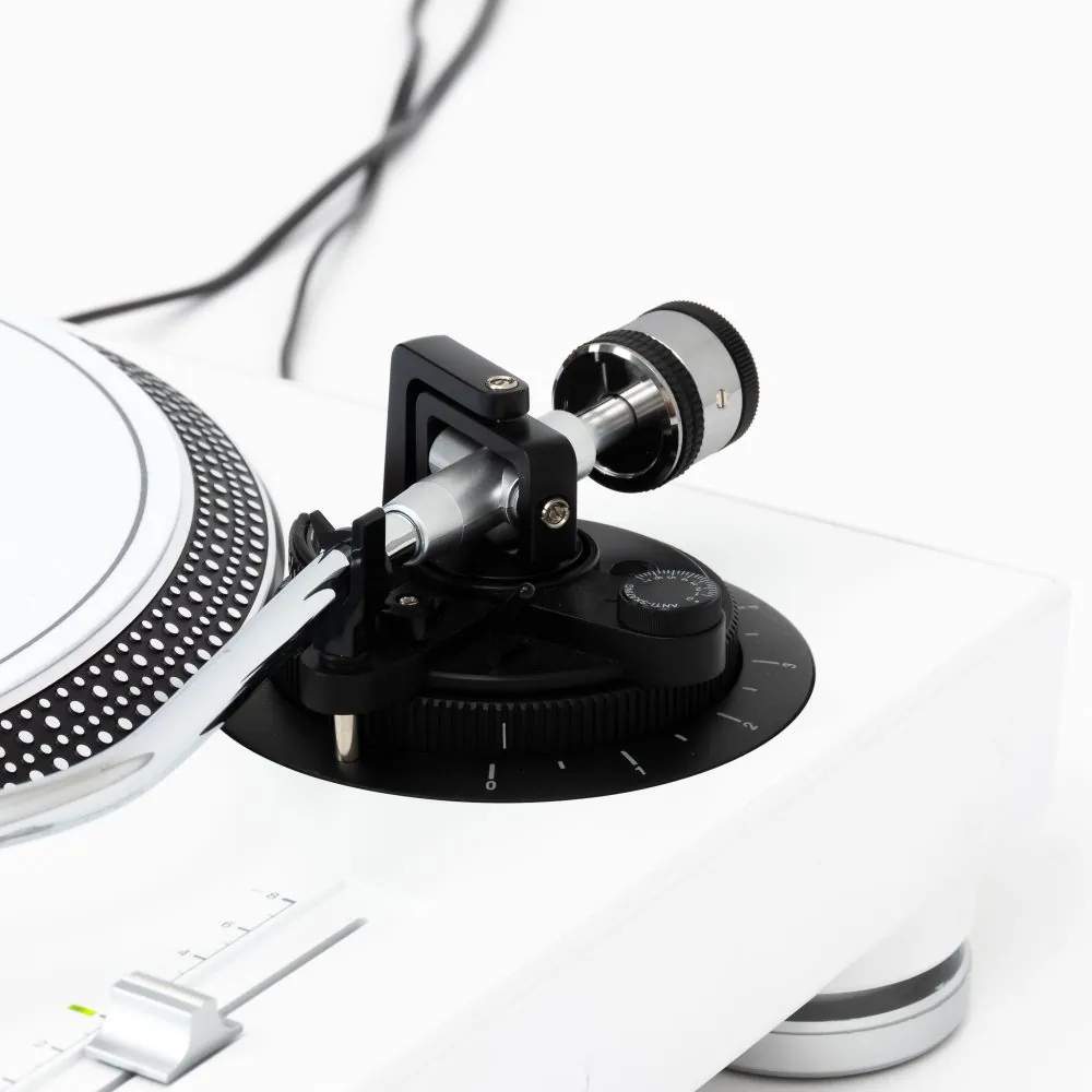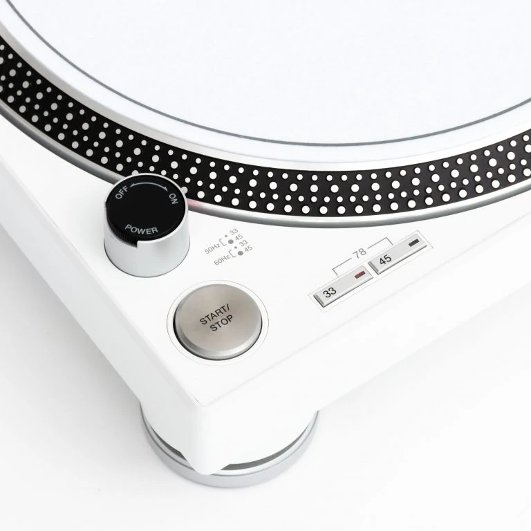 Dieser Plattenspieler kommt in außergewöhnlichem Finish in weiß.