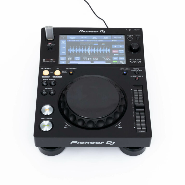Der Pioneer DJ XDJ 700 ist die “Klein-aber-fein”-Variante der großen XDJ 1000 Player. Kompakt und einfach zu verstauen, vor allem auch weil die Standfüße abnehmbar sind. Trotzdem haben die Ingenieure bei Pioneer sich nicht lumpen lassen und für optimale DJ-Perfomance das 7″ Touchdisplay der Pioneer-Oberliga eingebaut. Auch andere Features wie beispielsweise die Waveformdarstellung erbt der XDJ 700 aus der 1000er Reihe. Falls du also eine kompakte, günstigere Alternative zu den bisherigen XDJ-Modellen suchst, bist du hier genau richtig!