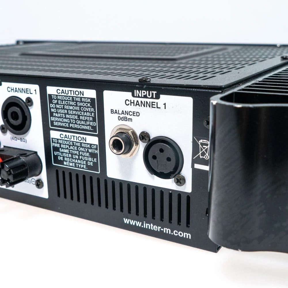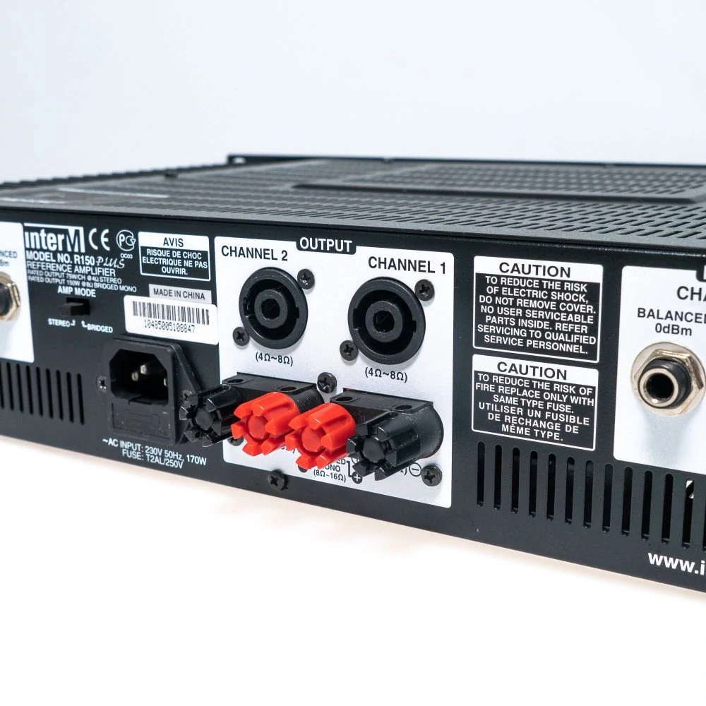 Hochwertiger Verstärker von Interm mit 150W Leistung an 4 Ohm auf 2 Kanälen.
