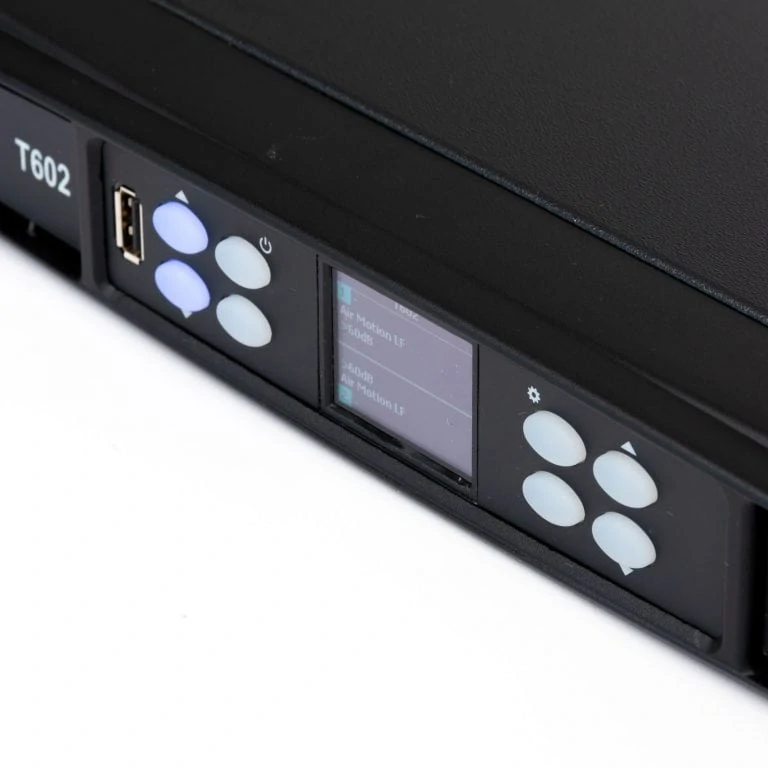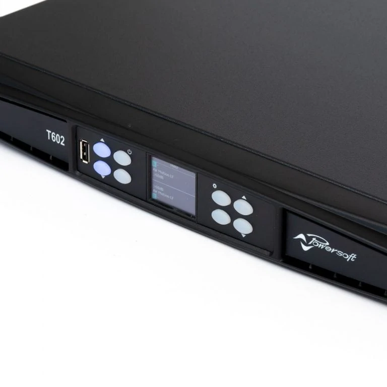Der Powersoft T602 ist ein zuverlässiger 2-Kanal Verstärker der Oberklasse mit einer Leistung von bis zu 1300 W an 8 Ohm, 2500 W an 4 Ohm oder 3000 W an 2 Ohm pro Kanal. Reduzierte Tiefe und Gewicht eignen sich optimal für den Einbau in ein 19″ Rack. Über das Display lassen sich Presets ansteuern, Gain, Delay und Mute kontrollieren sowie Headroom ablesen. Durch die Kompatibilität mit Armonía Plus ist eine noch genauere Kontrolle und Überwachung möglich. Ein hochprofessioneller und robuster Verstärker für Festinstallationen oder den mobile Einsatz.