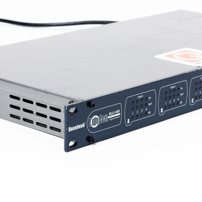 Der BSS Blu 100 ist ein Signalprozessor mit fester I/O Konfiguration und frei programmierbarem DSP. Das Kraftpaket ist mit zwölf analogen Ein- und acht analogen Ausgängen bestückt. Außerdem kann der BSS Blu 100 über den redundanten BLU-Link Audio Bus zusätzlich 48 Kanäle empfangen. Konfiguieren, steuern und überwachen lässt sich der BSS Blu 100 über die HiQnet London Architext oder HiQnet Audio Architect Software.