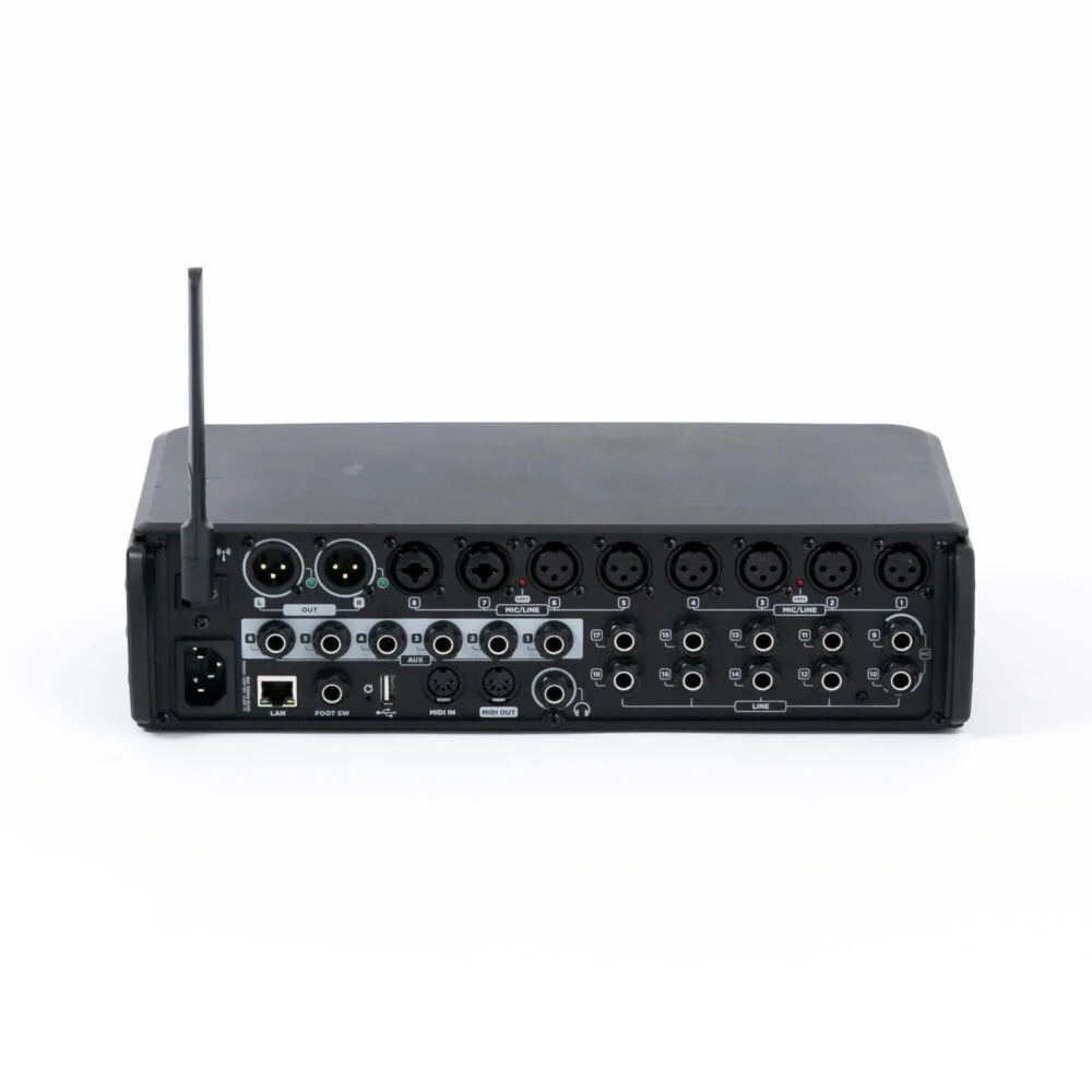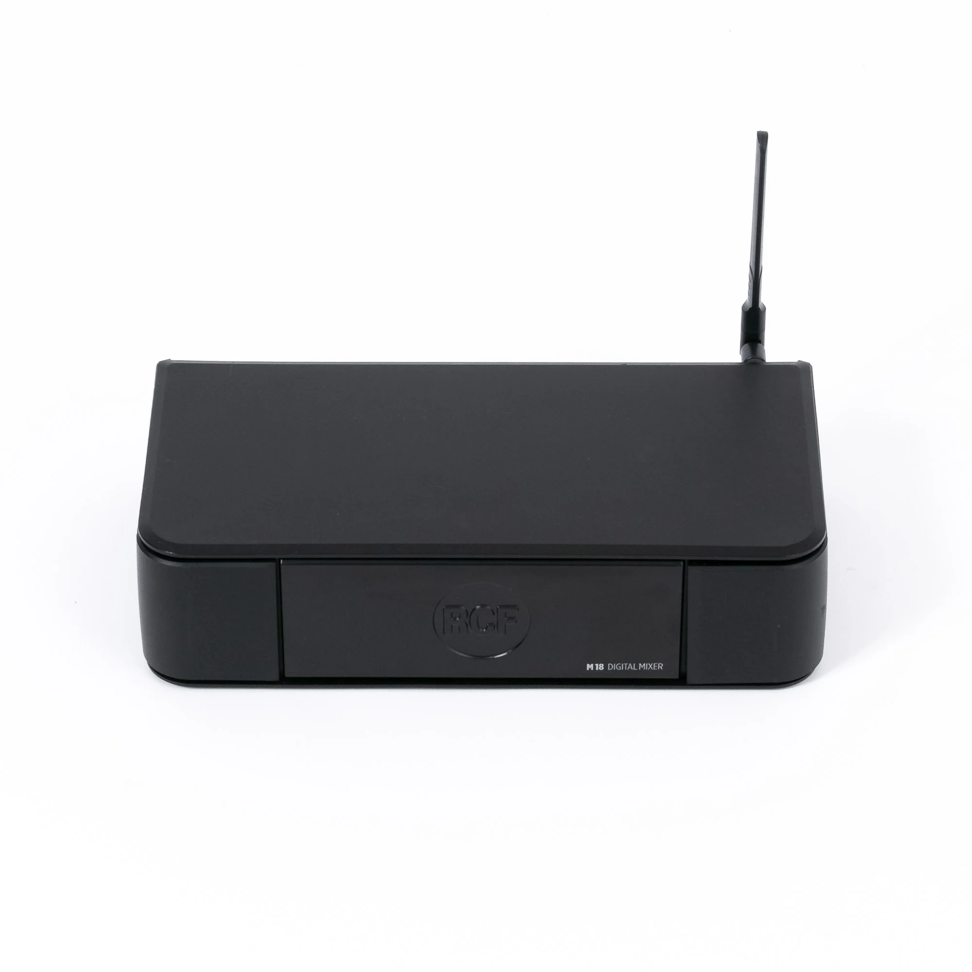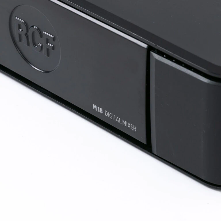 Das RCF M18 ist ein Digitales Mixing System mit 18 Eingangskanälen und sechs Auxen. Die kleine Box ist eine Kombination aus Mixer, Audioplayer/-recorder und Amp-Simulation und stellt somit ein wertvolles Tool für kleinere Bands oder ambitionierte Solokünstler*innen dar. Die 18 Inputs verteilen sich auf acht Mikofoneingänge von denen zwei Combobuchsen sind und 10 Line-Eingänge, von denen zwei auf Hi-Z geschaltet werden können. Gesteuert wird das RCF M18 via WiFi über die MixRemote App mit der Effekte und einzelne Parameter des EQs verändert werden können.