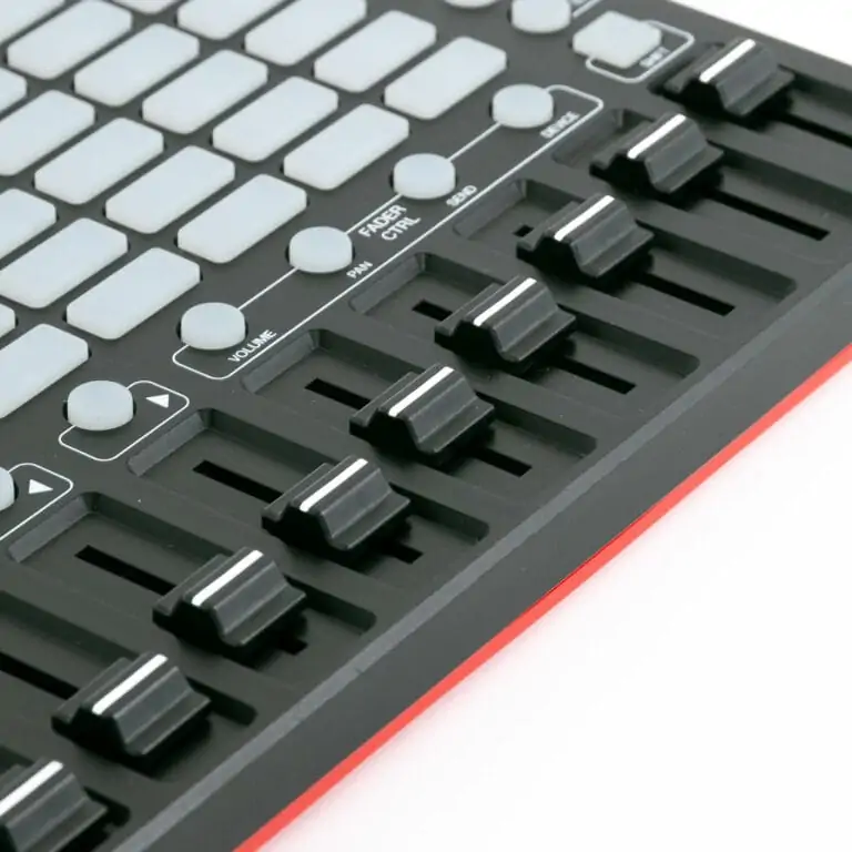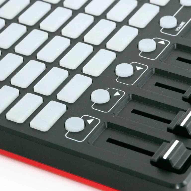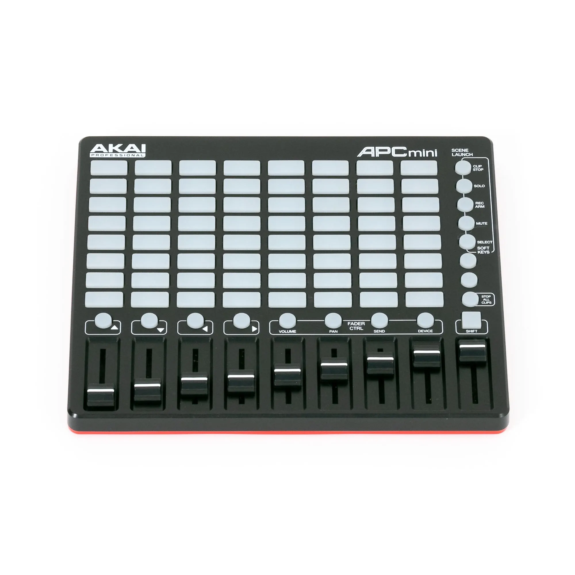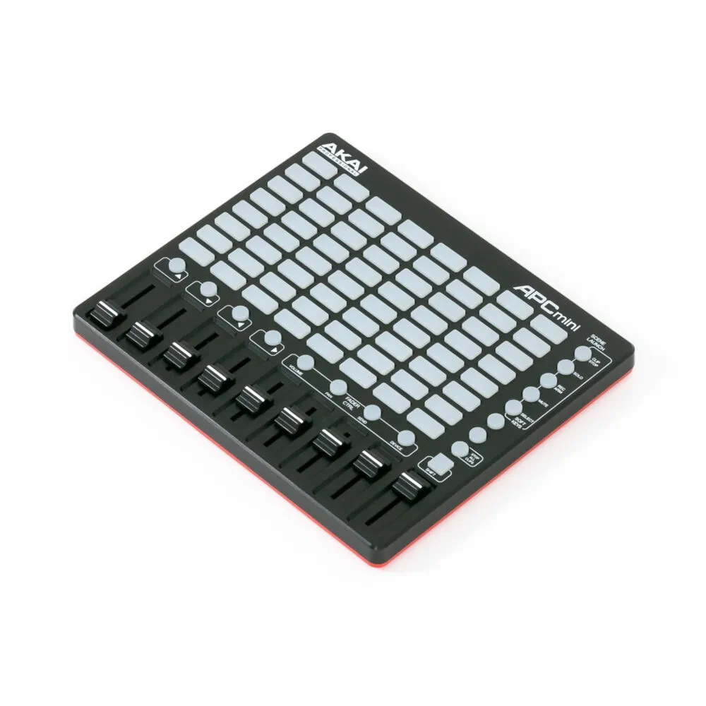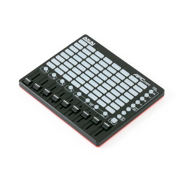 Der Akai APC Mini ein für Ableton konzipierter Controller und verfügt über eine 8 x 8 Matrix, 17 Tasten und neun Fader. Gerade für die Nutzung des Ableton Live Sequencers ist der Akai APC Mini optimiert, lässt sich aber auch für andere DAWs oder als Hardware-Steuerung für Software-Instrumente nutzen.