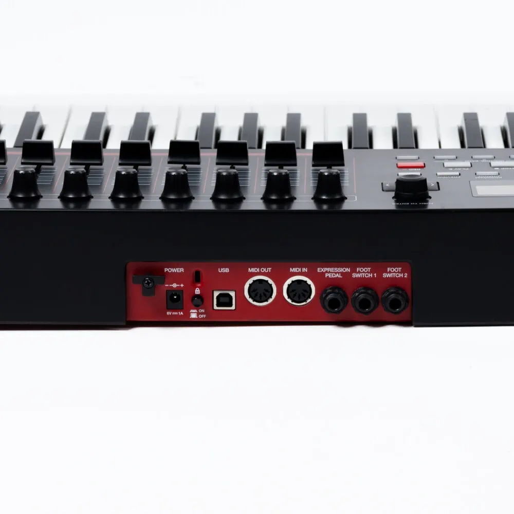 - Eingänge: 1x MIDI In (DIN-5-pol), 1x Expression Pedal (6,3 mm Klinke), 2x Foot Switch (6,3 mm Klinke)