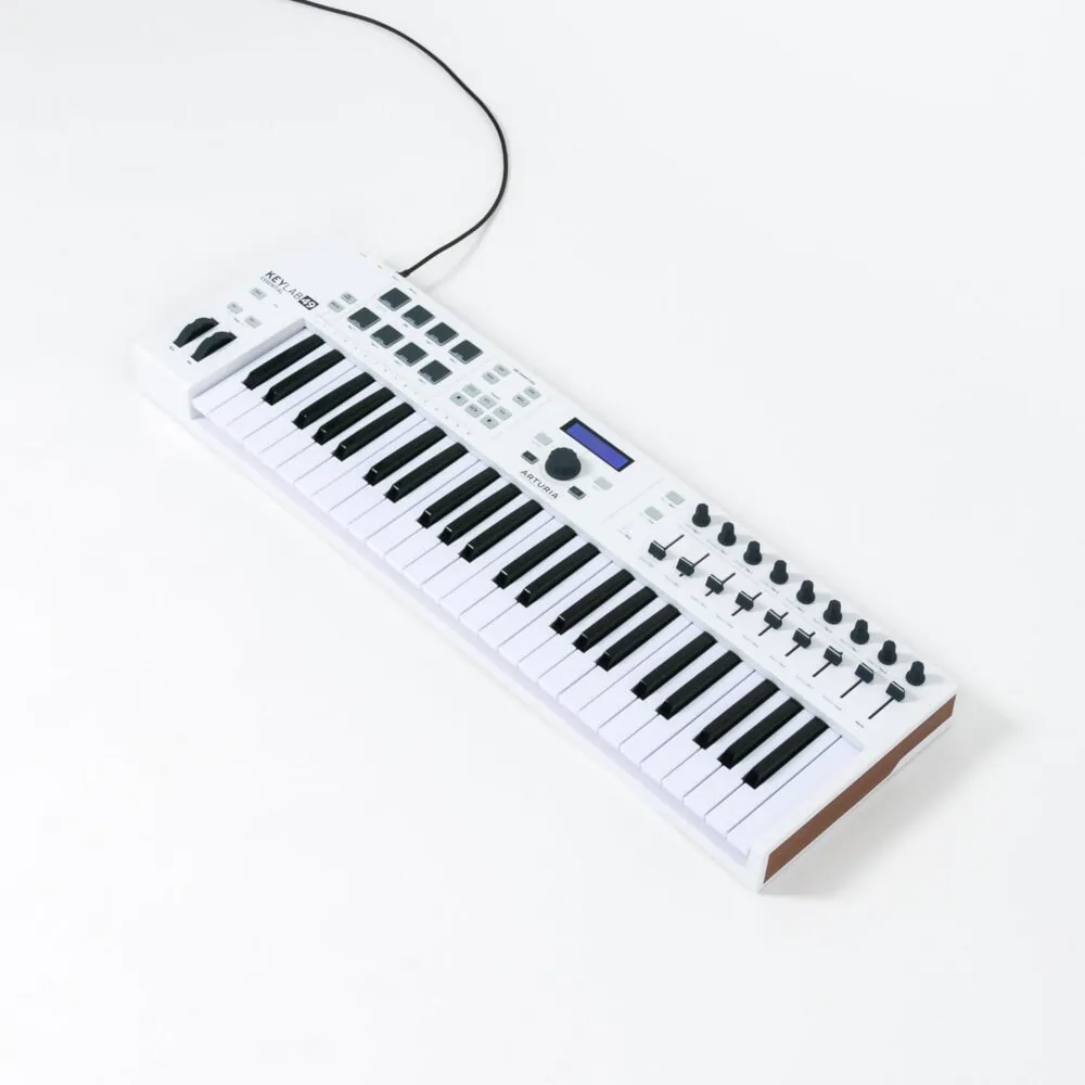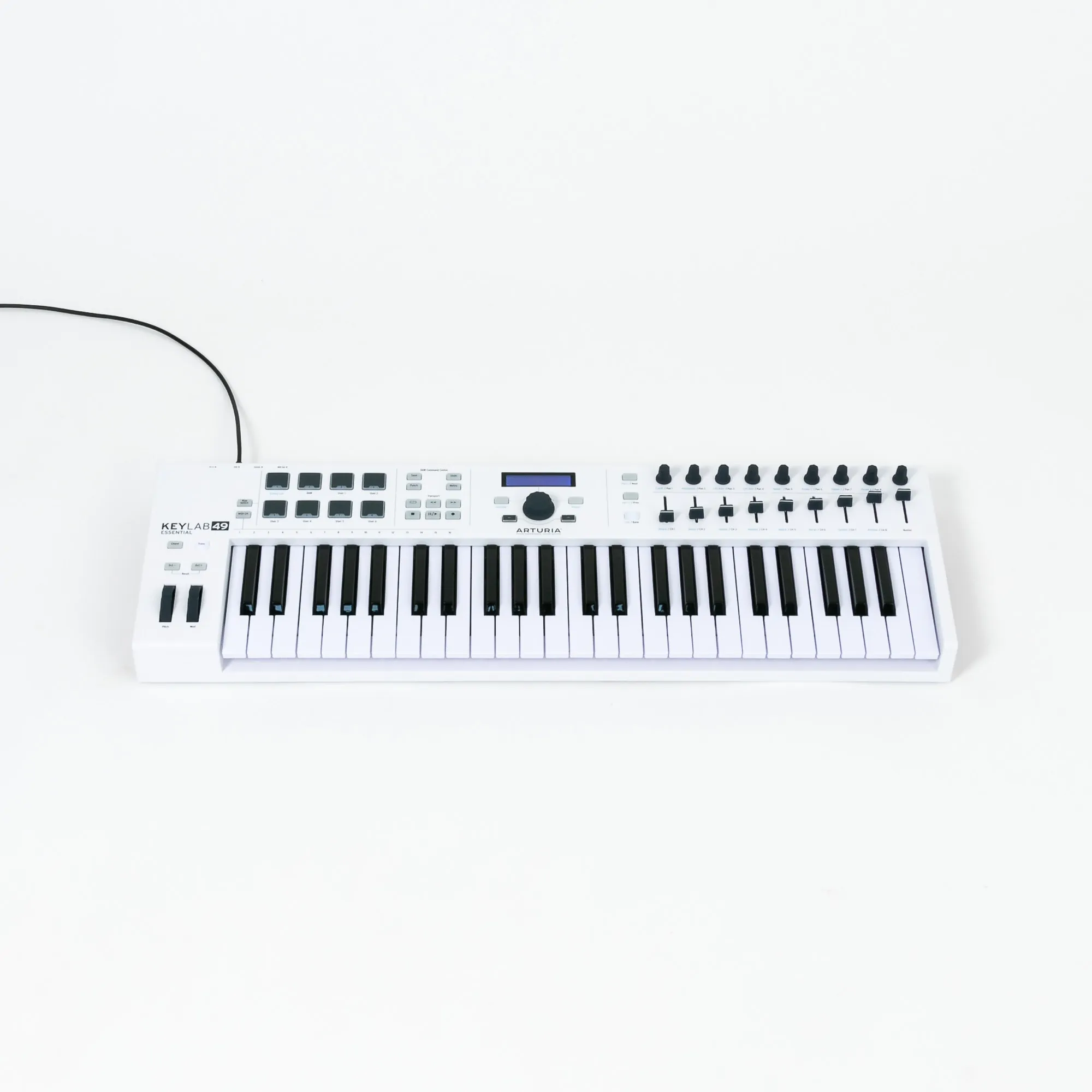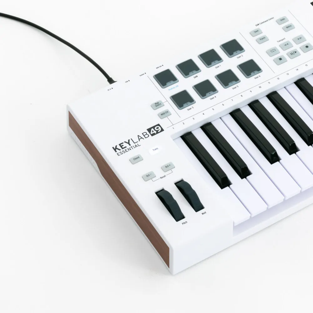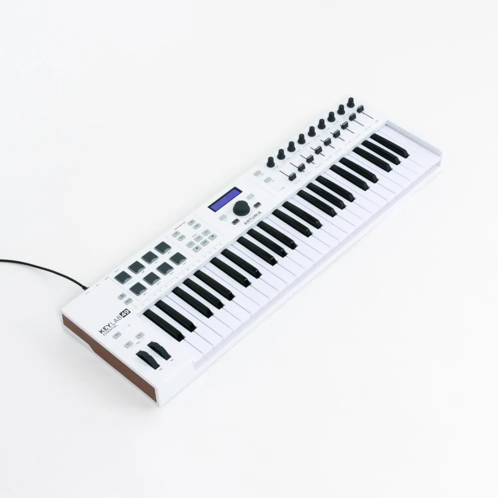 Das Arturia KeyLab Essential 49 ist ein MIDI-Controller Keyboard und bringt mit seinen Bedienelementen die Möglichkeit, alle wichtigen Parameter einer DAW zu steuern. Der USB-Controller ist mit Fadern, Drehreglern, Pitchbend- und Modwheel, Taster, einer Transportsektion und hintergrundbeleuchteten Pads ausgestattet. Als kleines Masterkeyboard eignet sich das Arturia KeyLab Essential 49 hervorragend!