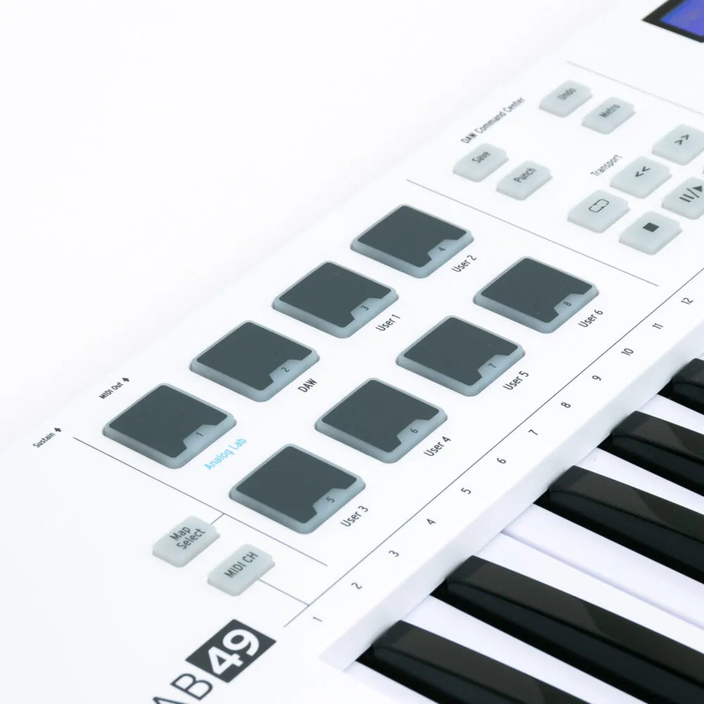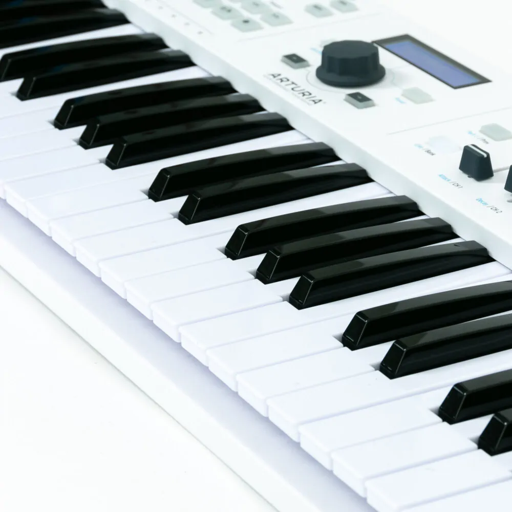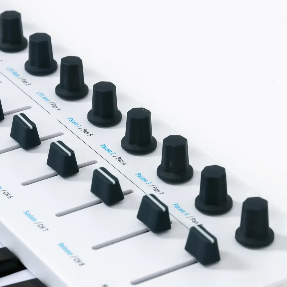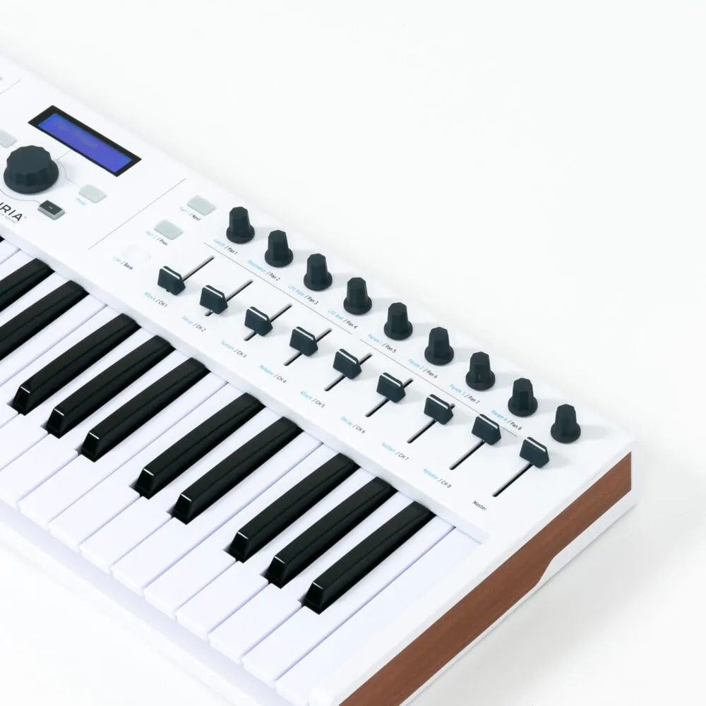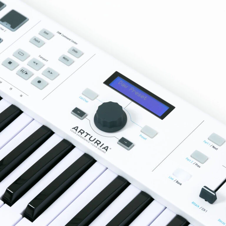 Das Arturia KeyLab Essential 49 ist ein MIDI-Controller Keyboard und bringt mit seinen Bedienelementen die Möglichkeit, alle wichtigen Parameter einer DAW zu steuern. Der USB-Controller ist mit Fadern, Drehreglern, Pitchbend- und Modwheel, Taster, einer Transportsektion und hintergrundbeleuchteten Pads ausgestattet. Als kleines Masterkeyboard eignet sich das Arturia KeyLab Essential 49 hervorragend!