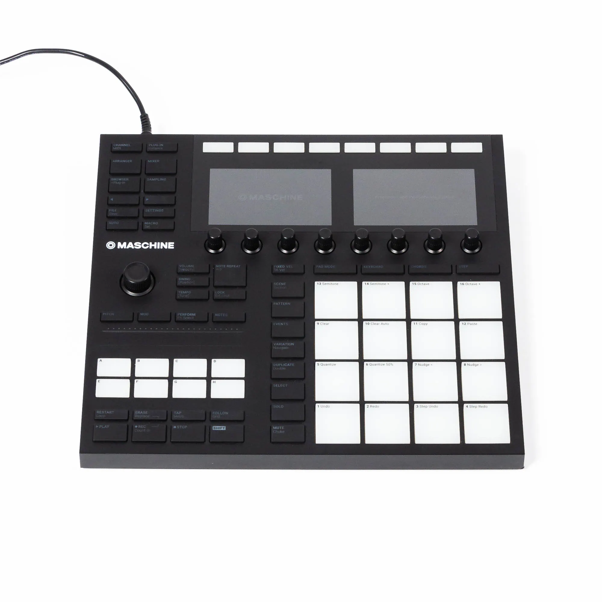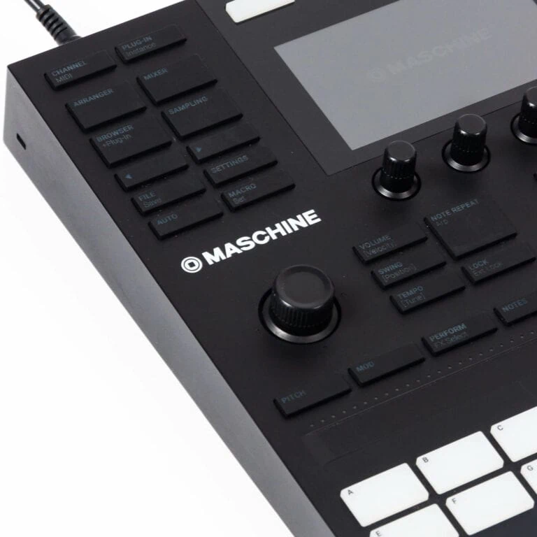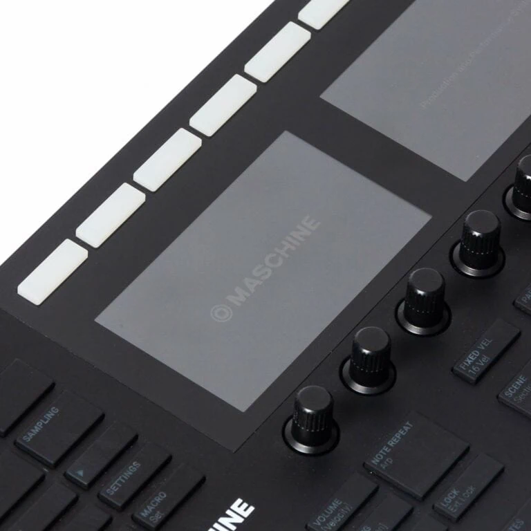 Die Native Instruments Maschine MK3 ist eine Groovebox, die als Hardware/Software-System für Musikproduktionen, das Programmieren von Beats oder Live-Perfomances verwendet werden kann. Sie bringt 16 anschlagdynamische Pads, einige Buttons, acht Drehregler und vereint diese in einem intuitiven Layout. Die Native Instruments Maschine MK3 ist im Gegensatz zu ihrer Vorgängerin mit zwei hochauflösende Farbdisplays ausgestattet. Darüberhinaus verbirgt sich ein Audio-Interface in der Groovebox, das mit je zwei Audio-Ein- und -Ausgängen, sowie einem regelbaren Mikrofon-Input ausgestattet ist.