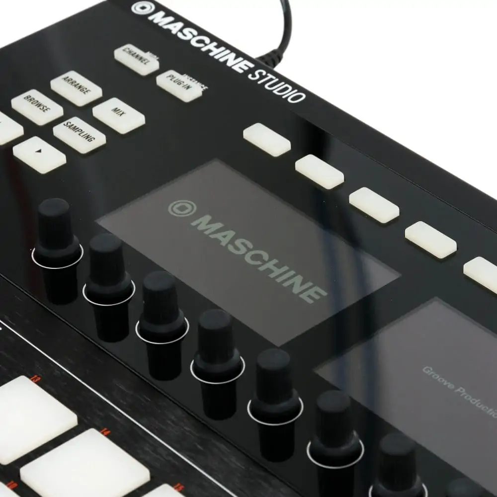 Die Native Instruments Maschine Studio ist eine Groovebox mit professioneller Bedienoberfläche, die sowohl als DAW-Controller aber auch als Standalone verwendet werden kann. Mit 16 berührungsempfindlichen Pads, zwei Displays, acht Drehreglern und dem Jogwheel kannst du wie mit links Recordings und Editing vornehmen. Vor allem die One-Touch-Recording Automation-Funktion macht deinen Workflow unglaublich schnell und intuitiv! Die Native Instruments Maschine Studio ist ein perfektes Tool für jedes Home-Studio.
