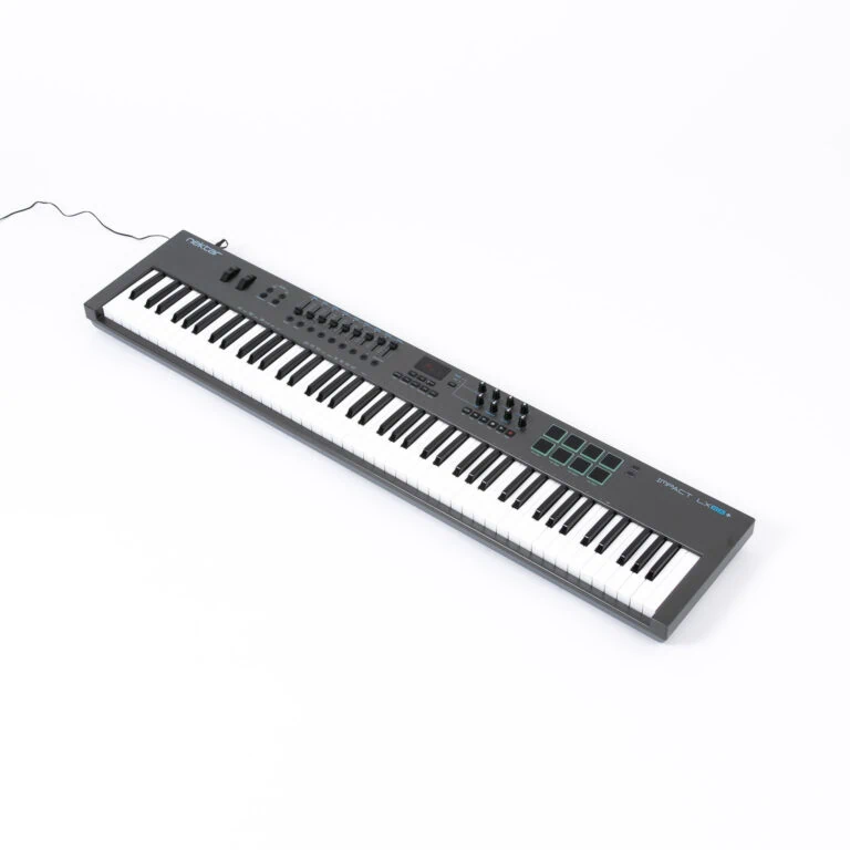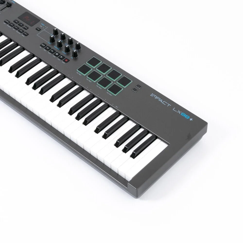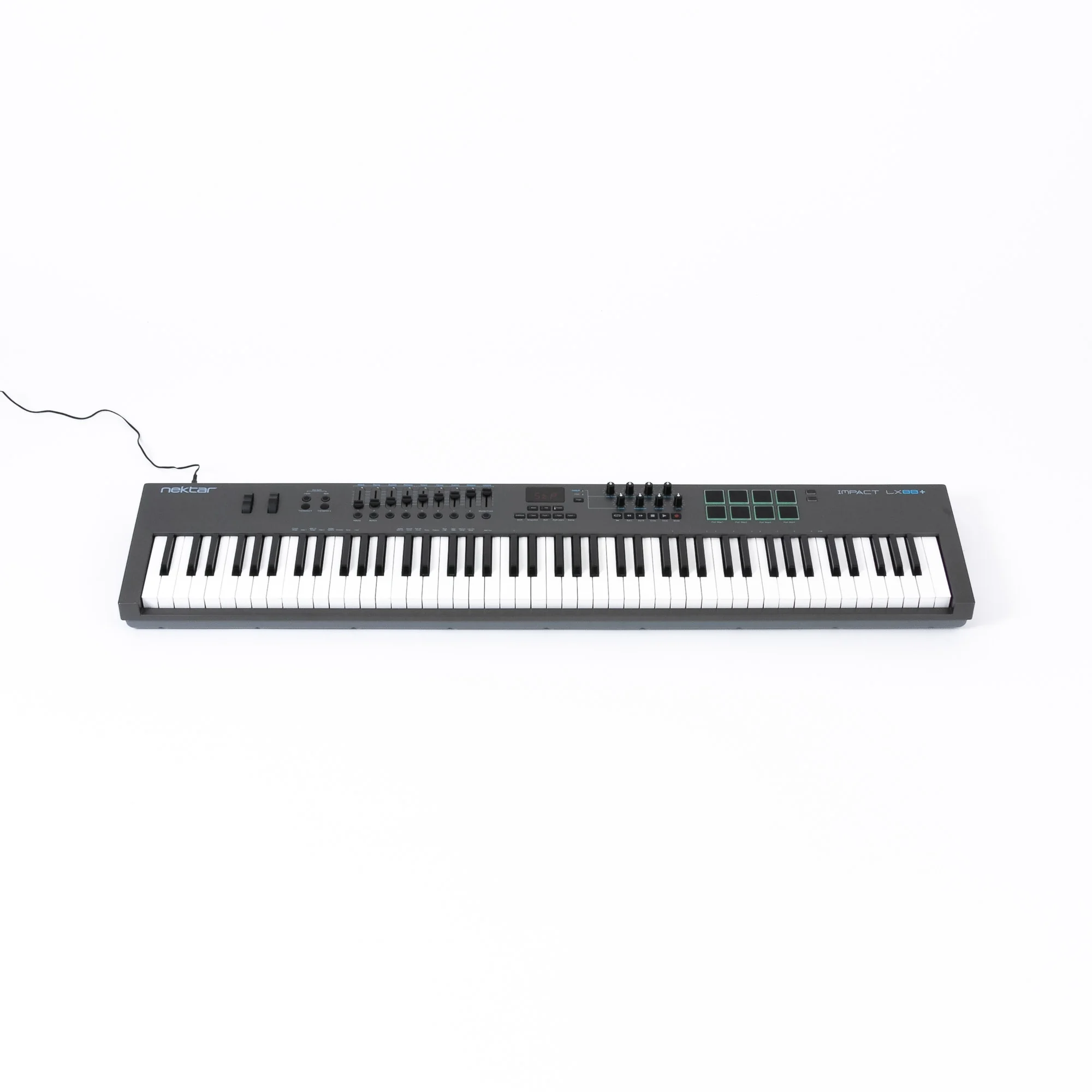 Der Nectar Impact LX88+ ist ein USB-MIDI-Controller-Keyboard mit 88 anschlagdynamischen Tasten. Es bietet eine umfangreiche DAW-Integration inklusive Track-Volume und -Select, Patch-Auswahl und ist auf alle gängigen DAWs (Logic, Cubase, Studio One, Reason u.m.) angepasst.