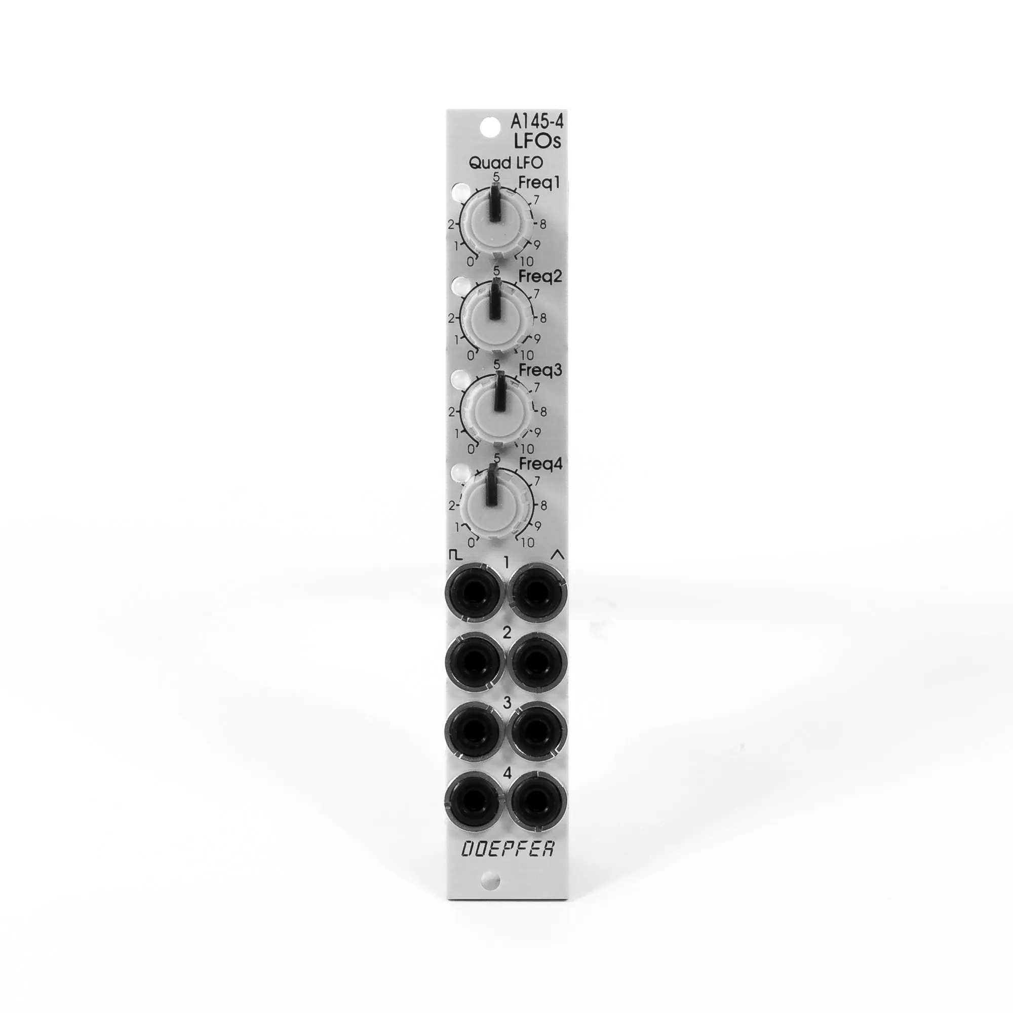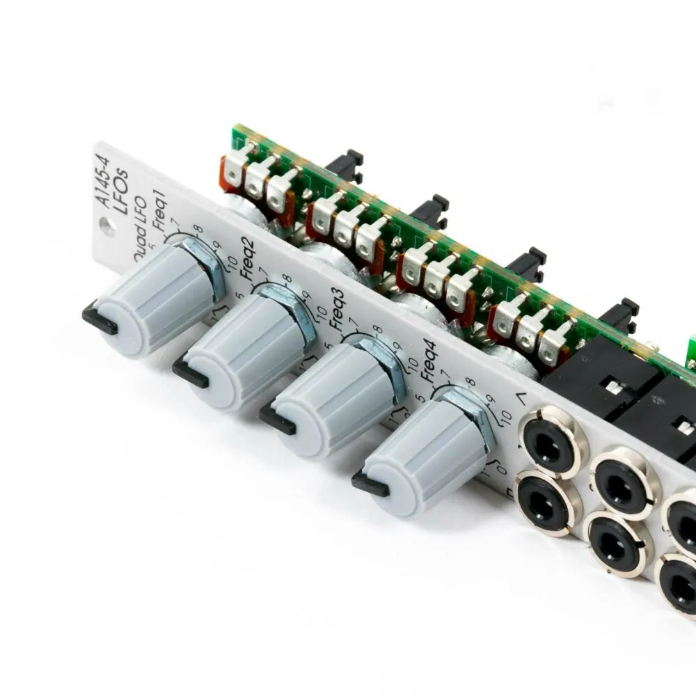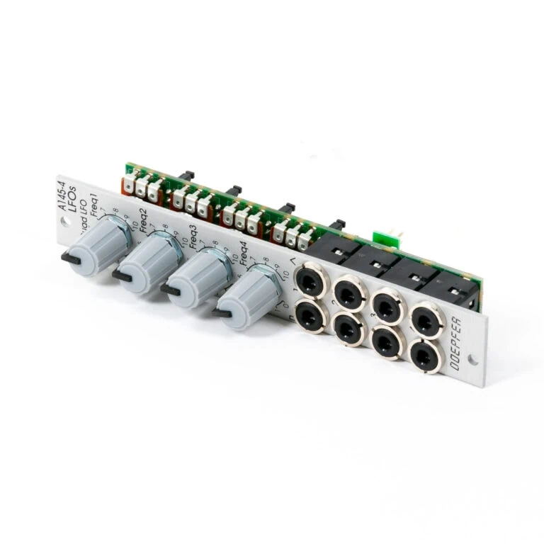 Das Doepfer A 145 4 Quad LFO ist ein vierfacher LFO mit je Dreieck- und Rechteckwellenform. In so gut wie keinem System sind LFOs wegzudenken. Deswegen leistet das Doepfer A 145 4 Quad LFO einen BĂ€rendienst in jedem Setup. Die LFOs können mithilfe einer SteckbrĂŒcke zwischen ungefĂ€hr 50 Hz … 0,o4 Hz und ca. 2 Hz … 0,002 Hz gewĂ€hlt werden.