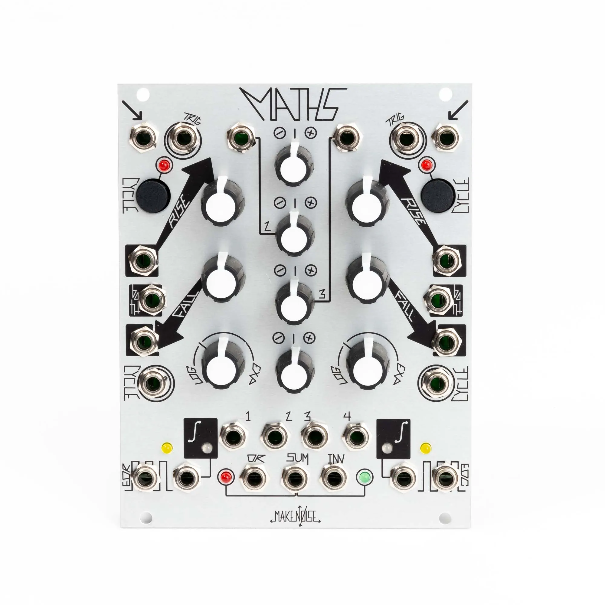 Das Make Noise Maths ist ein Clock-Modul für Modular-Synthesizer. Es kommt im Eurorack Format und ist wie analoger Computer aufgebaut. Da dieser analoge Computer für musikalische Produktionen desigend wurde, kann er jede Menge kontinuierliche Funktionen sowie unterschiedliche lineare, logarithmische, oder exponentielle Trigger Impulse erzeugen. Da das Make Noise Maths auch klassich als A/D- und D/A-Wandler verwendet werden kann, ermöglicht es digitale Informationen in analoge Signale zu transformieren und andersherum.