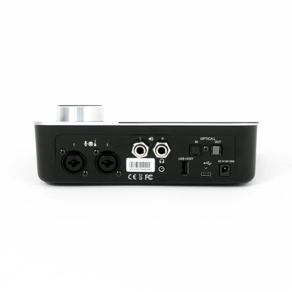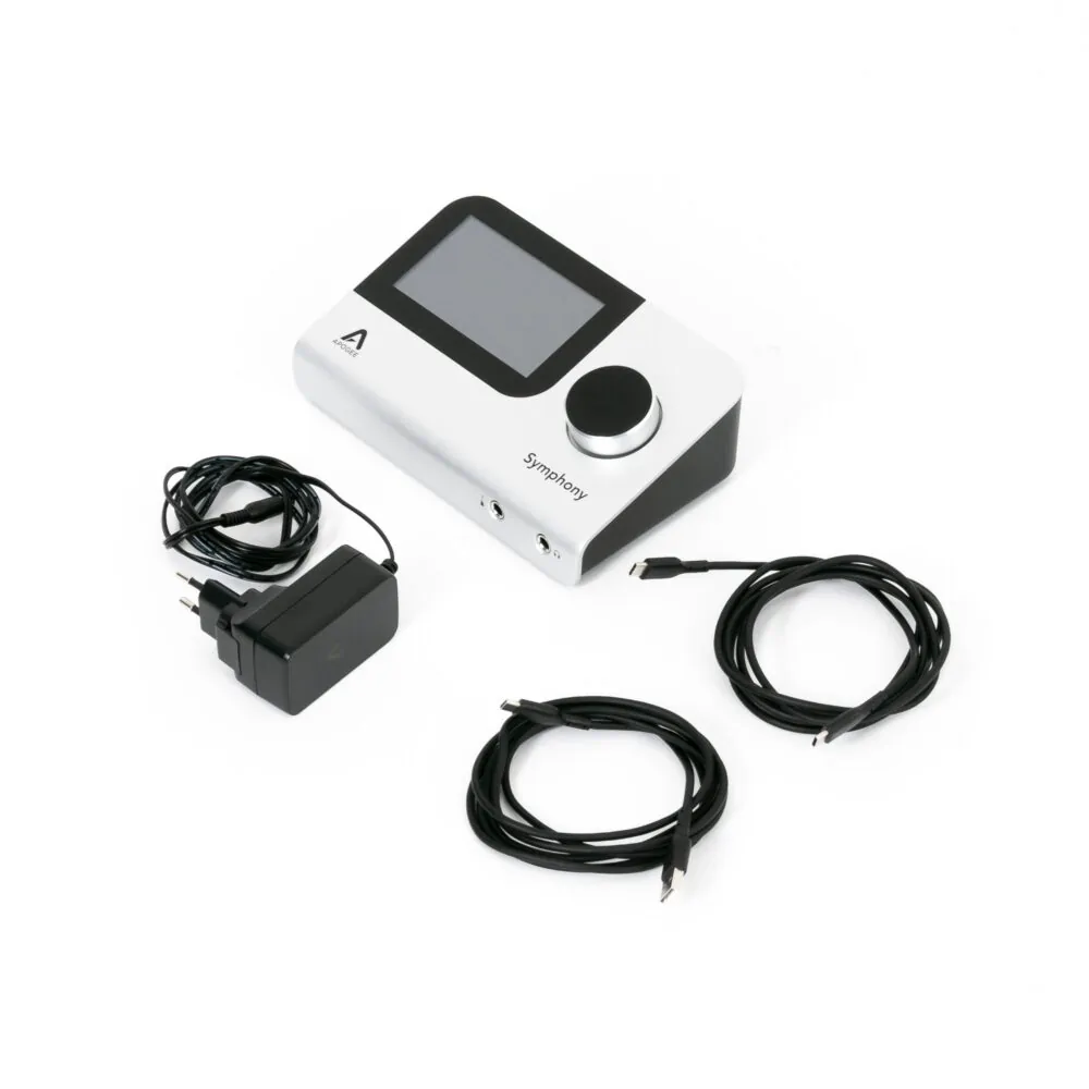 Das Apogee Symphony Desktop ist ein USB-C Audio Interface und stellt die kleine Erweiterung zur Symphonie-Reihe dar. Dank seiner starken Hardware DSP kann das Apogee Symphony Desktop die Plug-Ins der Apogee nativen Plug-Ins-Bibliothek ohne Latenz berechnen. Enthalten im Interface sind die Plug-Ins Symphony EDS Channel Strip, British Solid State, 50s American Tube und Symphony Reverb. Die Preamp-Plug-Ins können zwei Apogee Mikrofonpreamps ansteuern und deren Klangfarbe ändern. Die Instrumenteneingänge besitzen FET-basierte Preamps. Mit dem stylishen Touchdisplay können die Ein- und Ausgänge kalibriert und mit Presets bestückt werden.