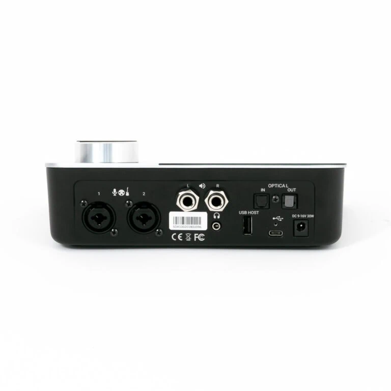 - Eingänge: 2x Mic (6,3 mm Klinke / XLR Kombo), 1x Instrument (6,3 mm Klinke), 1x Optical (ADAT)
