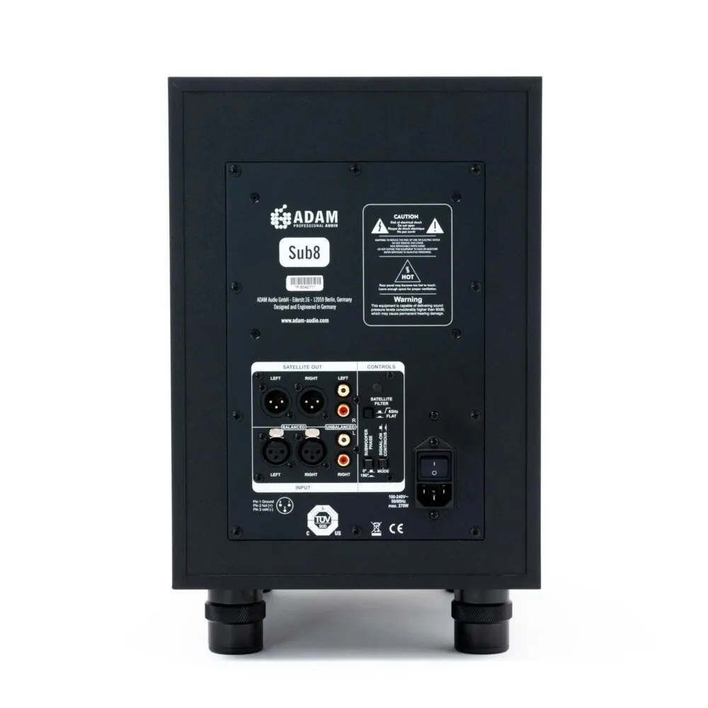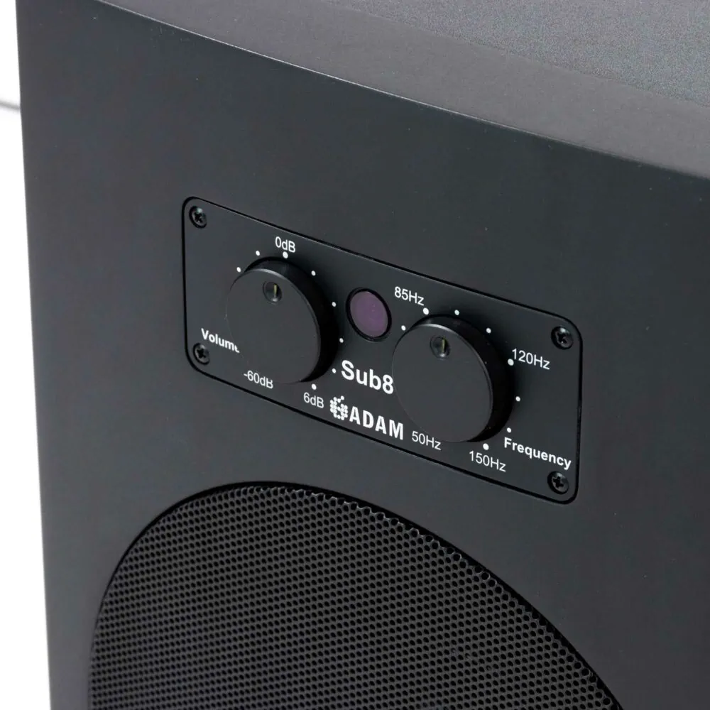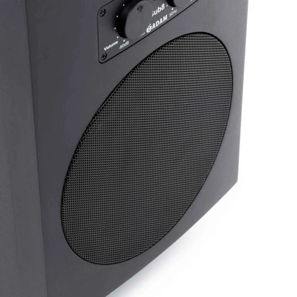 Der Adam Audio Sub 8 ist ein mächtiger Subwoofer mit kleinen Maßen. Dank langhubigem 8 Zoll Chassis, das von einem kräftigen Magneten und einer 50 mm Schwingspule betrieben wird, erweitert er das Wiedergabespektrum von Nahfeld Monitoren bis unter 30 Hz. ICE Module, die hohe Leistung und geringe Wärmeentwicklung vereinen, sind als Verstärker im Einsatz. Der Adam Audio Sub 8 ist variabel an die akustischen Bedingungen seiner Umwelt angepasst und bietet dir die volle Dröhnung Bass!