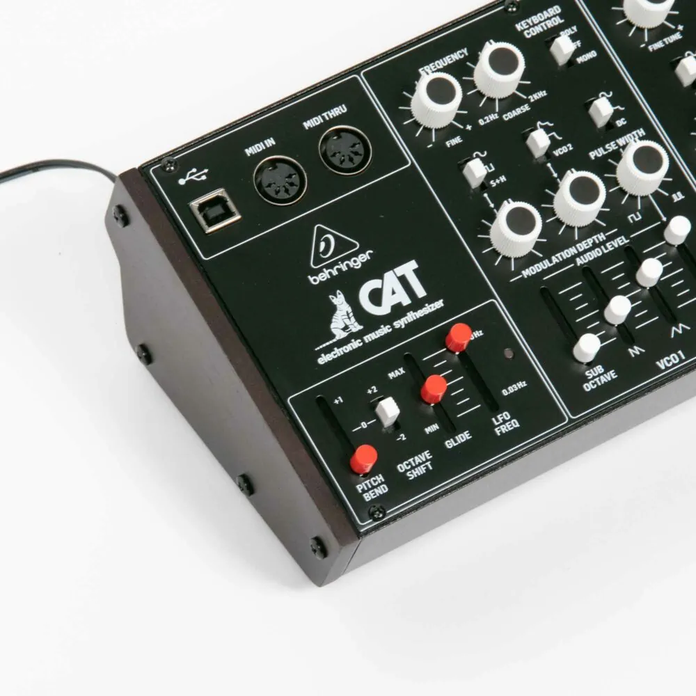 Der Behringer Cat ist ein Clone des weltbekannten OCTAVE The Cat im Rack-kompatiblen Boutique Design. Er verfügt über zwei Oszillatoren von denen einer Sägezahn-, Rechteck- und Dreieck-Wellenformen erzeugen kann, während der andere über Sägezahn- und Rechteckwellenformen verfügt. Die Suboszillatoren erlauben es dir, tiefe Bässe und Leadsounds im Handumdrehen einzustellen. Mit dem LFO kannst du die Tonhöhe, Pulseweite und Filter modulieren. Als großes Highlight des Behringer Cat lässt sich auf jeden Fall die Crossmodulation zwischen den beiden Oszillatoren durch Ansteuerung per Hüllkurve bezeichnen. Der Desktop-Synthesizer ist monophon oder duophon spielbar.