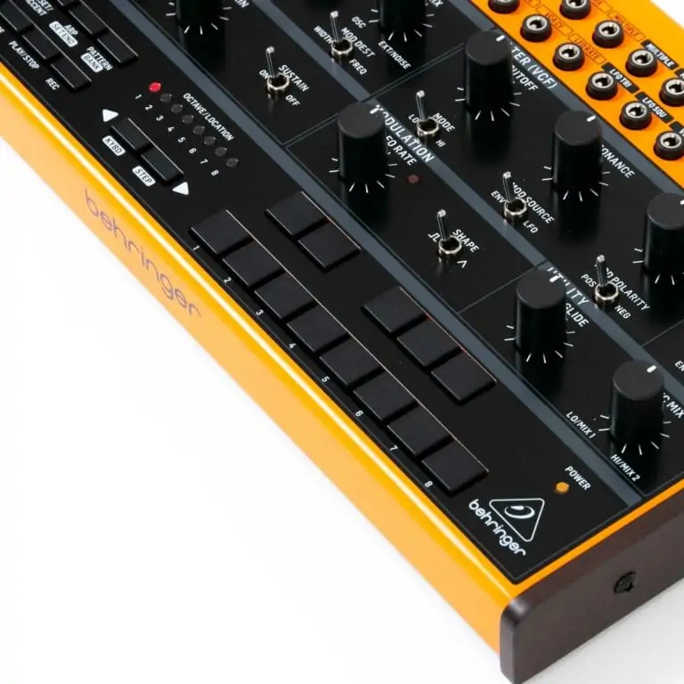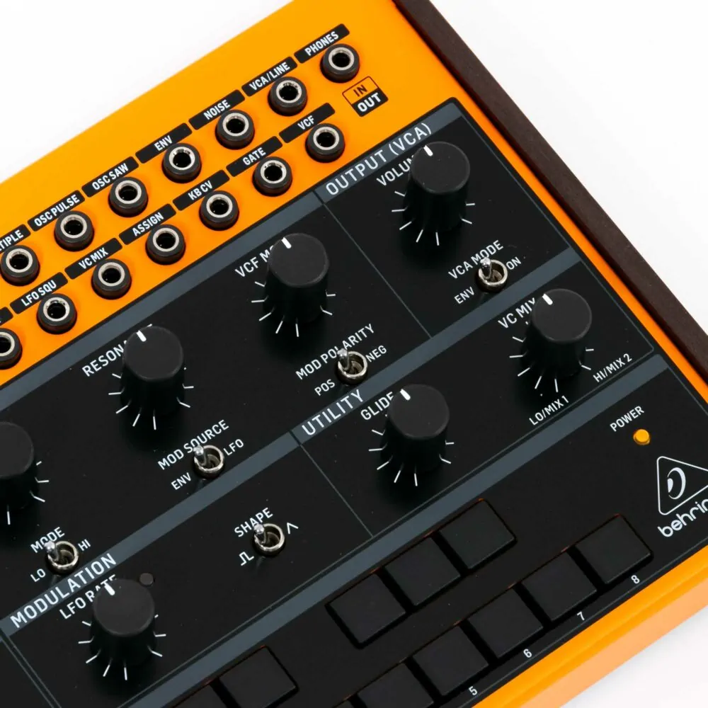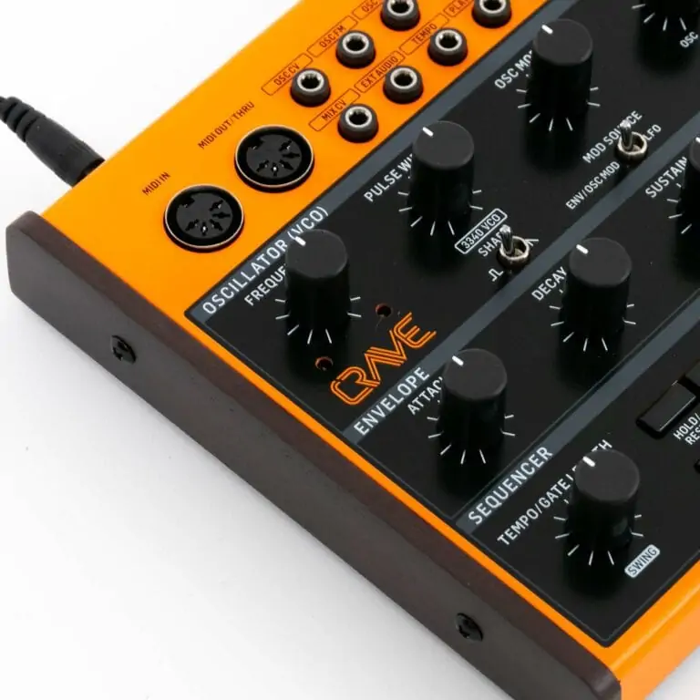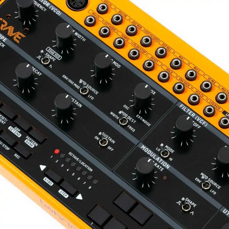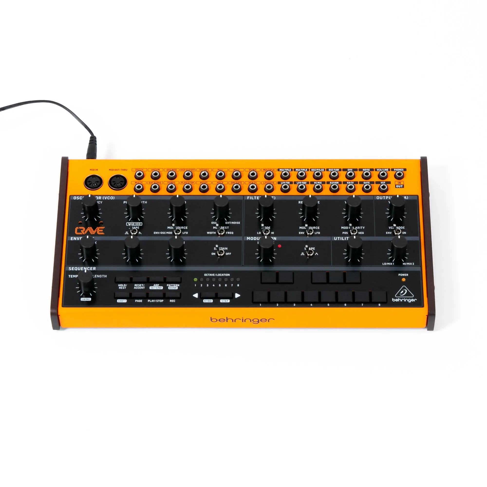 Der Behringer Crave ist ein analoger Synthesizer, der ein Patchpanel mit sich bringt. Der mit einem Curtis IC CEM3340 Chip ausgestattete Oszillator hat Sägezahn und Rechteck mit Pulsweitenmodulation. Außerdem verfügt der Behringer Crave über einen Audioeingang und Weißes Rauschen. Der 24dB Filter kann zwischen Low- und Highpass umgeschaltet werden und Hüllkurve sowie LFO können auch zur Klangveränderung verwendet werden. Das Sahnehäubchen stellt das Patchpanel dar, mit dem du über 32 Ein- oder Ausgänge für Audio-, CV-, Gate-, Trigger- und Clock-Signale nutzen kannst.