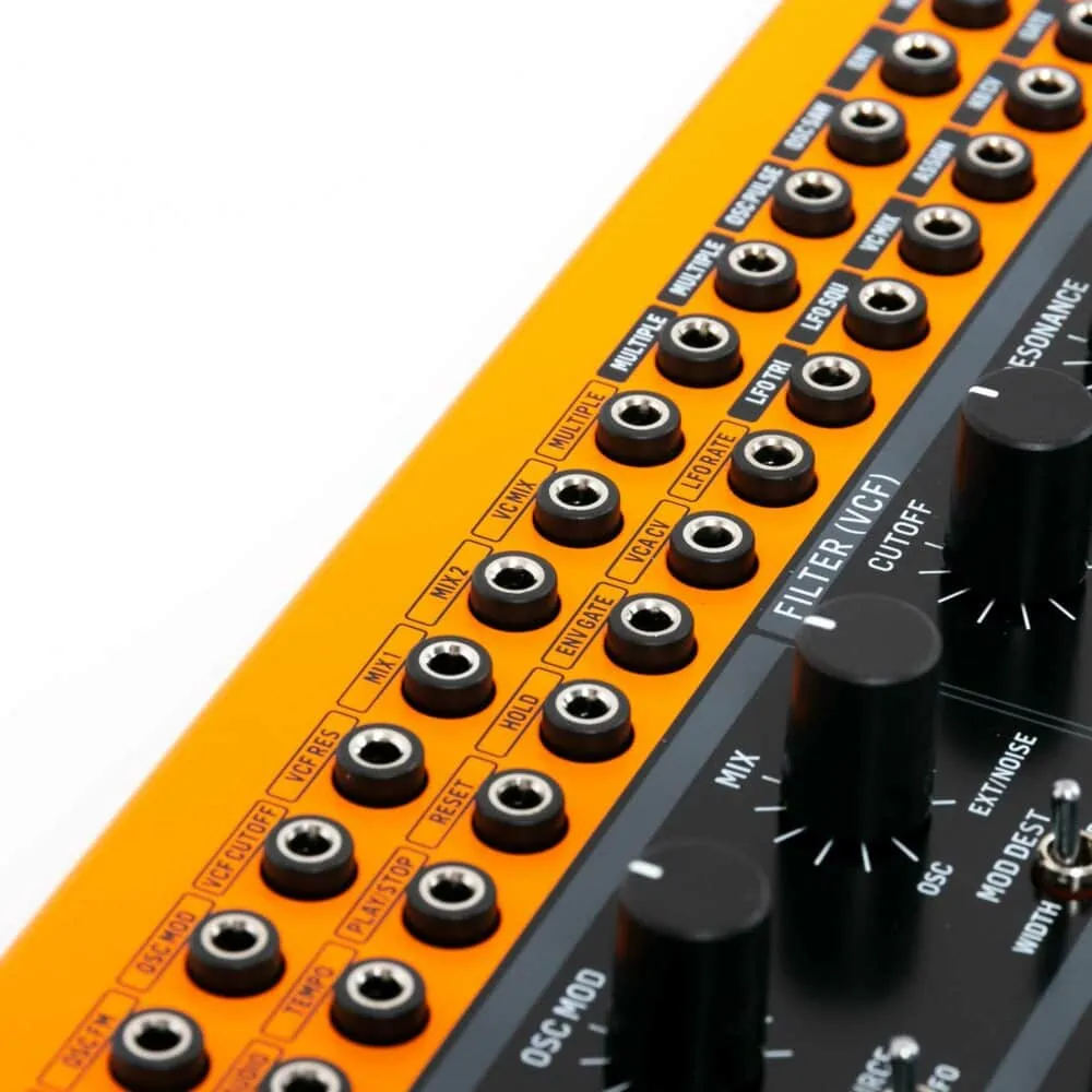 • Ausgänge: 14x Patch (3,5 mm Klinke), 1x MIDI Out (Din 5-pol), 1x Phones (3,5 mm Klinke)
