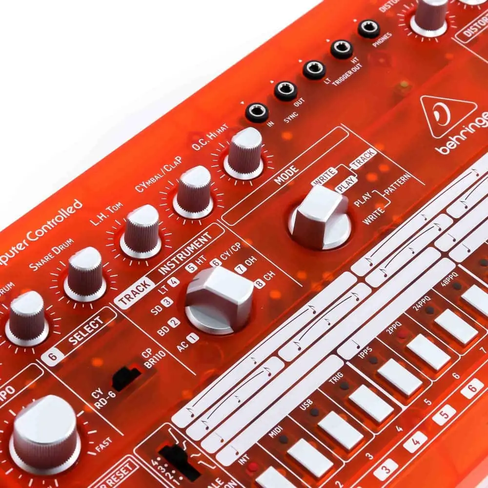 Der Behringer RD-6-TG ist ein analoger Klon der legendären Roland TR-606. Die Drum-Machine bringt acht Sounds aus rein analoger Klangerzeugung, deren Lautstärke sich bis auf Cymbal/Clap sowie die beiden Toms, individuell steuern lässt. Ein integrierter Sequenzer bringt bis zu 64 Steps und eine Spur auf der man Accents setzen kann. Der Behringer RD-6-TG lässt sich einfach bedienen und dank des Distortion-Effekts inklusive Intensitäts- und Tone-Regler, lassen sich die Drum-Sounds nach deinem Belieben gestalten.