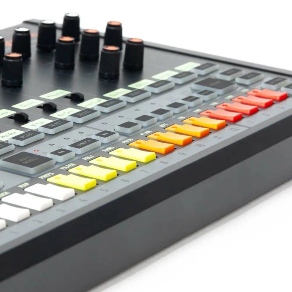 • Ausgänge: 1x Phones (6,3 mm Klinke), 1x MIDI Out (DIN 5-pol), 11x Voice Out (6,3 mm Klinke), 3x Trigger Out (6,3 mm Klinke), 1x Sync Out (3,5 mm Klinke), 1x Mono (6,3 mm Klinke)
