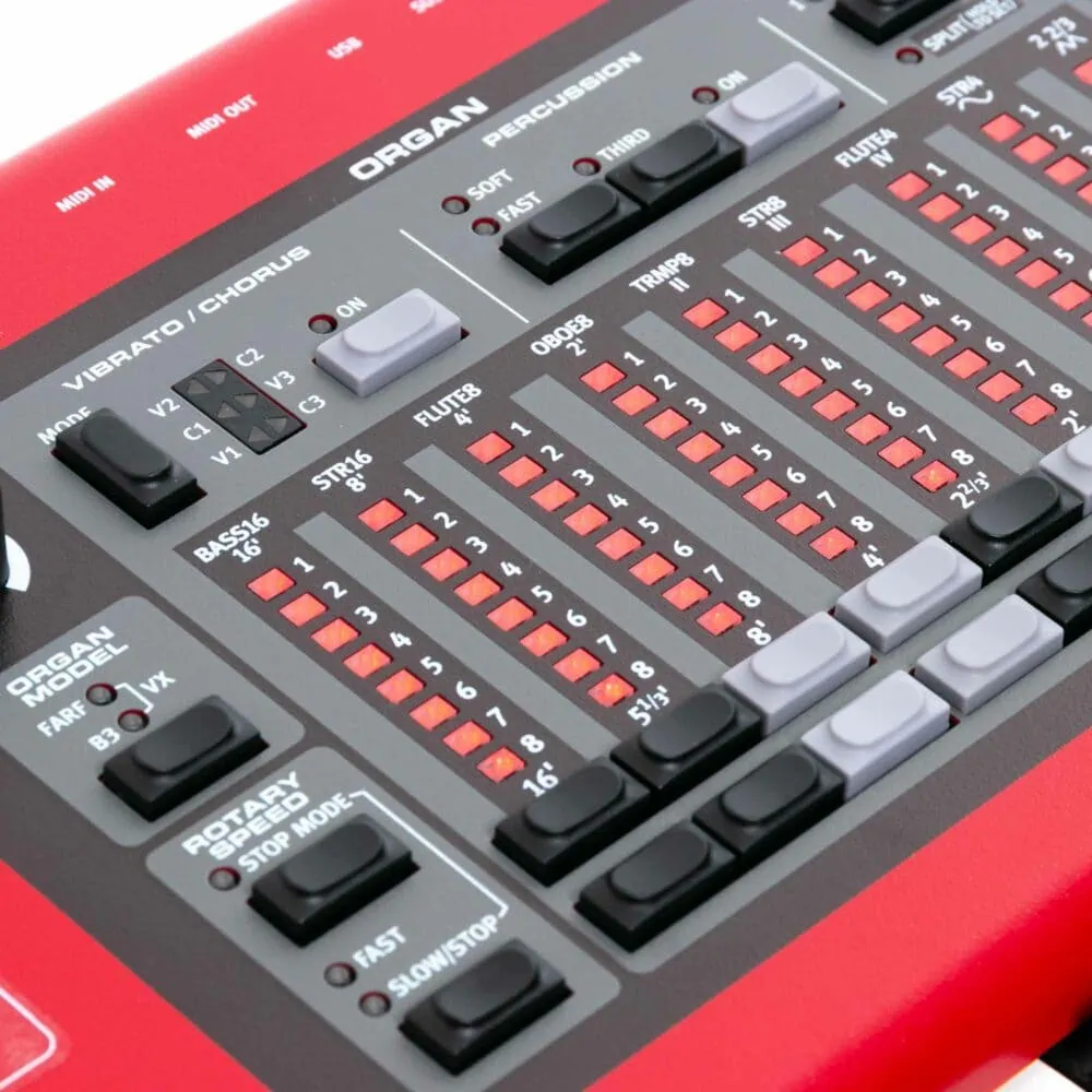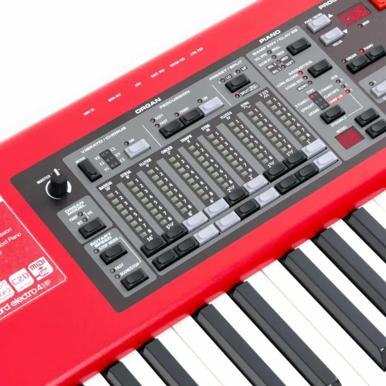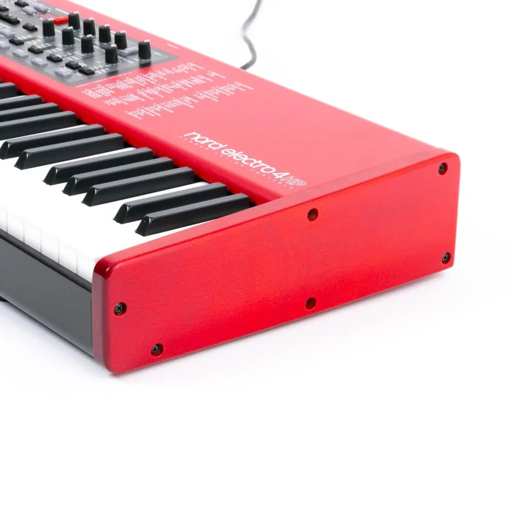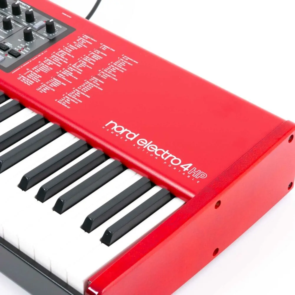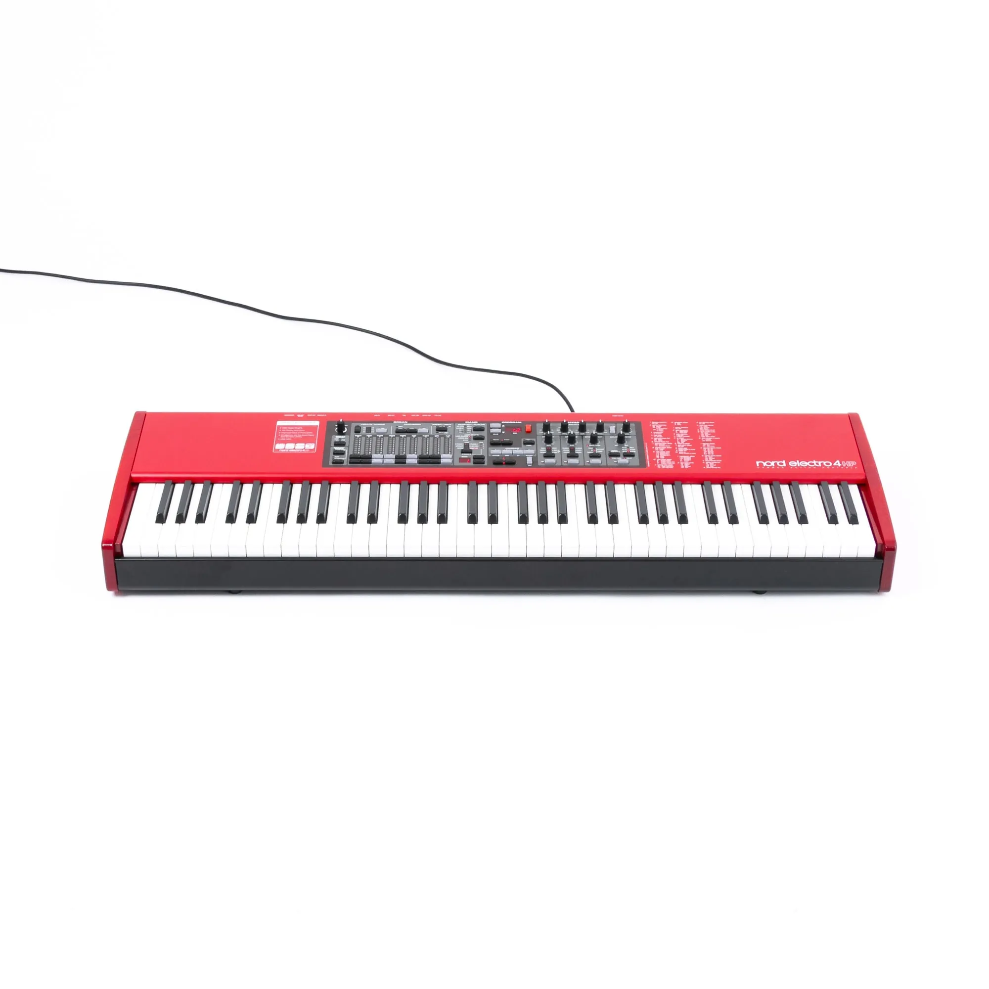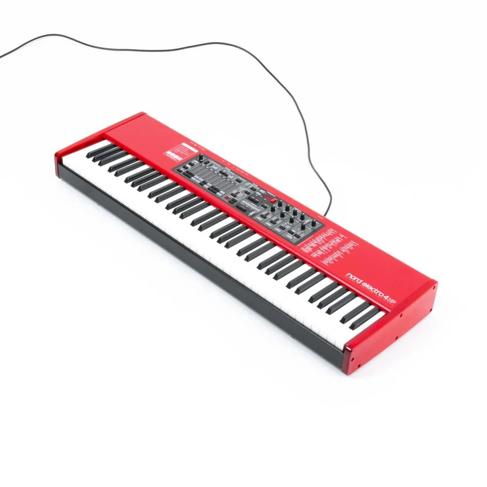 Das Clavia Nord Electro 4 HP bringt die hervorragenden Funktionen der Vorgänger Nord Electro 3 Serie und kann darüber hinaus noch mit der Tonewheel-Engine der Nord C2D und Simulation des 122 Leslies punkten. Dank der Tonewheel Engine gestaltet sich die Orgelfunktion des Clavia Nord Electro 4 HP noch überzeugender als man es ohnehin schon von der Nord Serie gewohnt ist. Zusätzlich wurden Vibrato- und Chorus-Scanner verbessert und das Percussion-Modeling überarbeitet, sodass bei Legato-Passagen eine optimierte Kontrolle über die Percussion-Lautstärke besteht. Die Piano Sounds des Clavia Nord Electro 4 HP stammen erneut aus den hochqualitativen Archiven der Nord Piano Library. Auch die Nord Sample Library wird von dem Gerät unerstützt, sodass noch mehr Sounds in das Keyboard geladen werden können. An Effekten darf es erneut nicht fehlen! Das Clavia Nord Electro 4 HP hat zwei Effektsektionen und zusätzlich ein Delay, 3-Band-EQ, Compressor / Amp und Reverb. Die Klaviatur des HP Models besteht aus 73 perfekt gewichteten Tasten mit Hammermechanik, die von E bis E reichen. Ein solches Meisterwerk an Instrument- und Ingeneurskunst bereichert jeden musikalischen Haushalt!