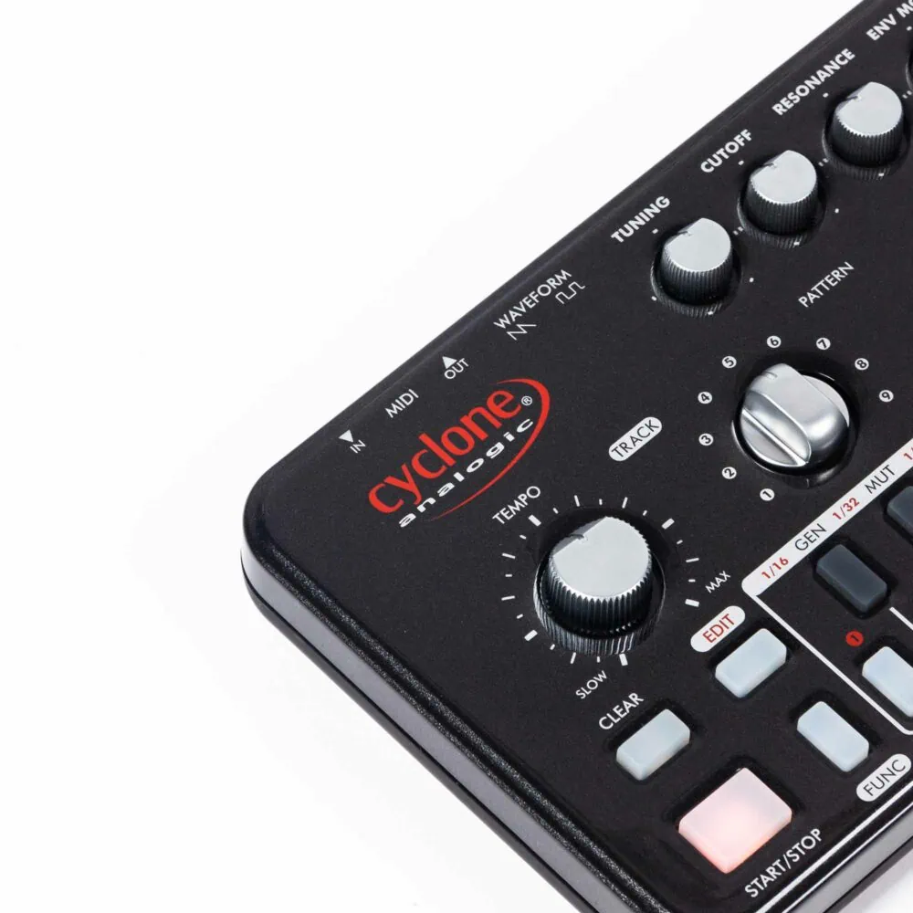 Der Cyclone Analogic Bass Bot TT 303 V2 ist ein analoger Basssynthesizer, der den ikonischen Klang der Roland TR 303 wieder zum Leben erweckt. Er gilt als die beste Adaption des legendären Sounds und verbessert diesen in dieser zweiten Generation um ein neues Design, zwei weitere Sequencer-Modi und einen extra VC/Gate-Output. Anders als bei seinem Vorbild aus den 80ern hast du nun die Möglichkeit durch Shuffle noch mehr Groove in deinen Sound zu bringen. Die bekannten Parameter wie Filter, Resonance, Env Mod und Decay lassen dich dein eigenes Pattern modulieren und in einem der 432 User-Slots speichern. Aus neun unterschiedlichen Styles bieten dir 108 Presets Inspiration für neue Projekte. Nutze die modernste Form der TR 303 und mache den Cyclone Analogic Bass Bot TT 303 V2 zu deiner neuen Producing-Waffe!