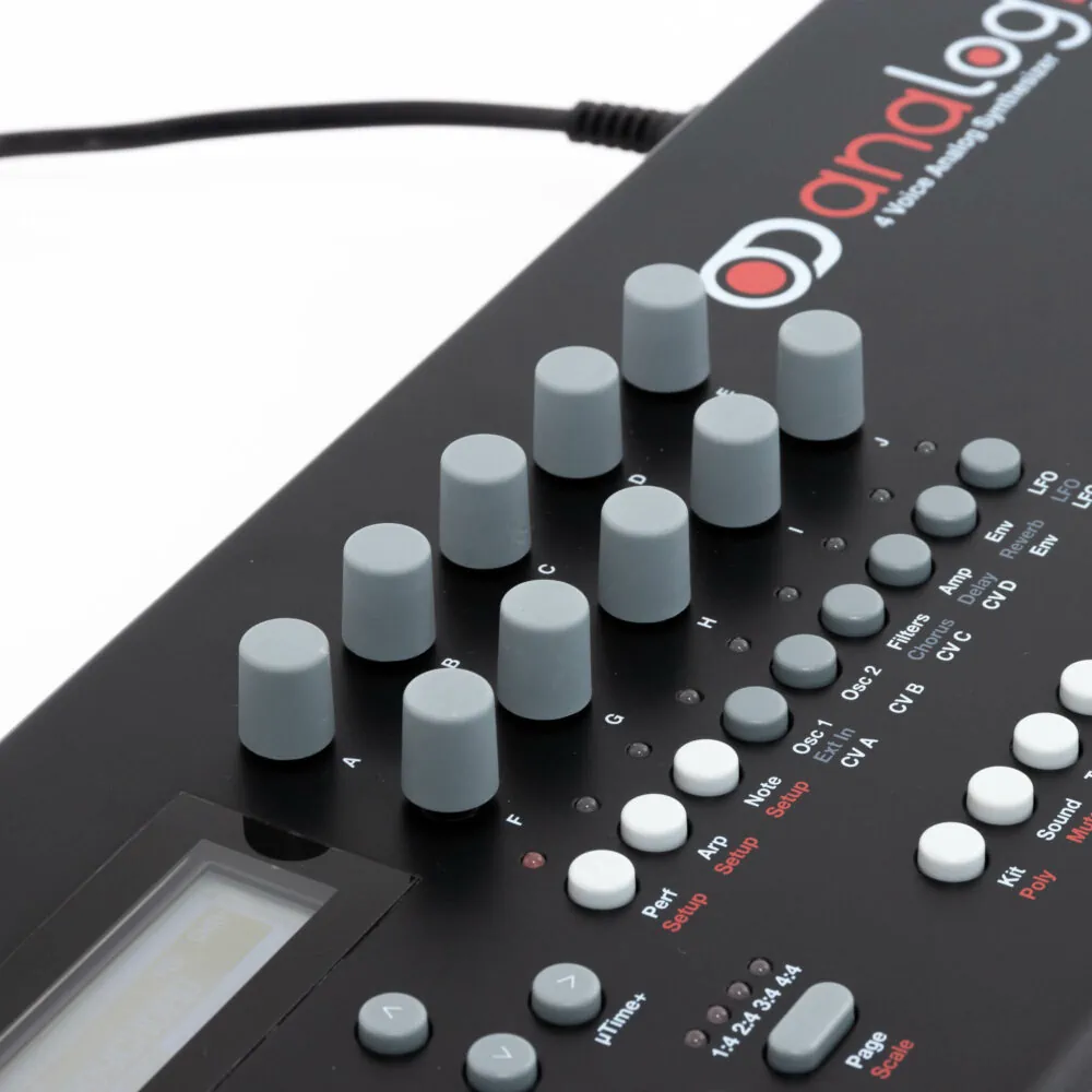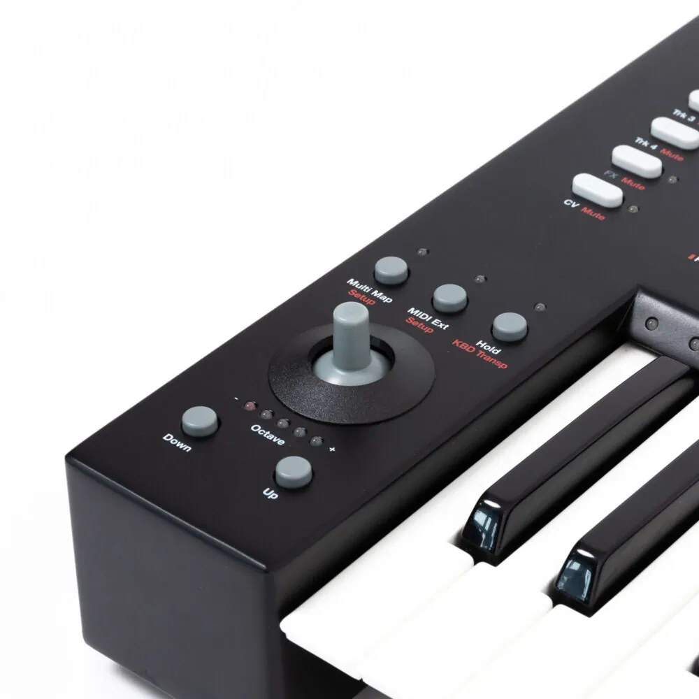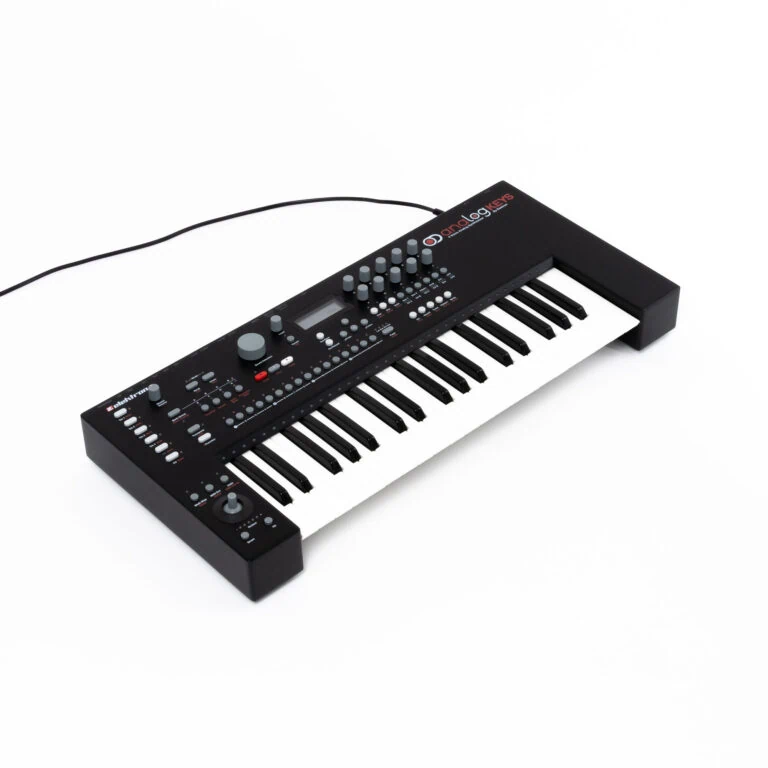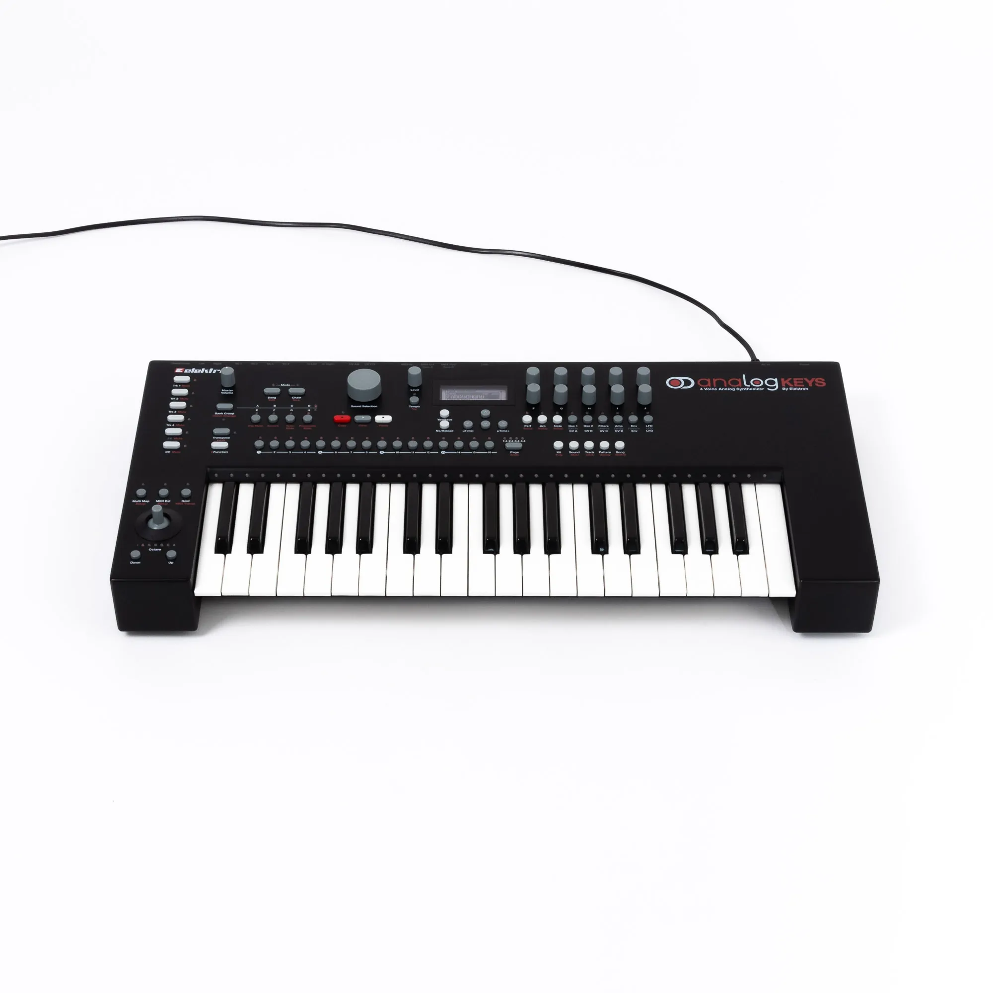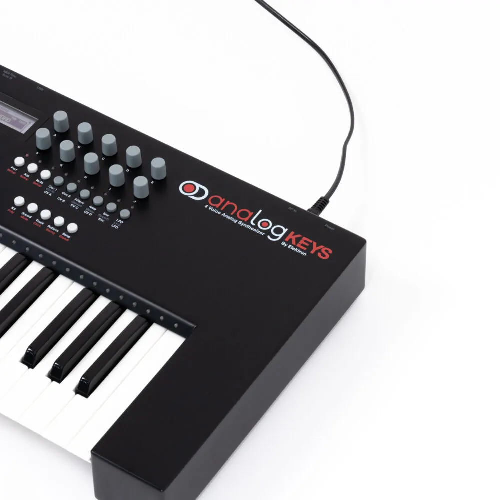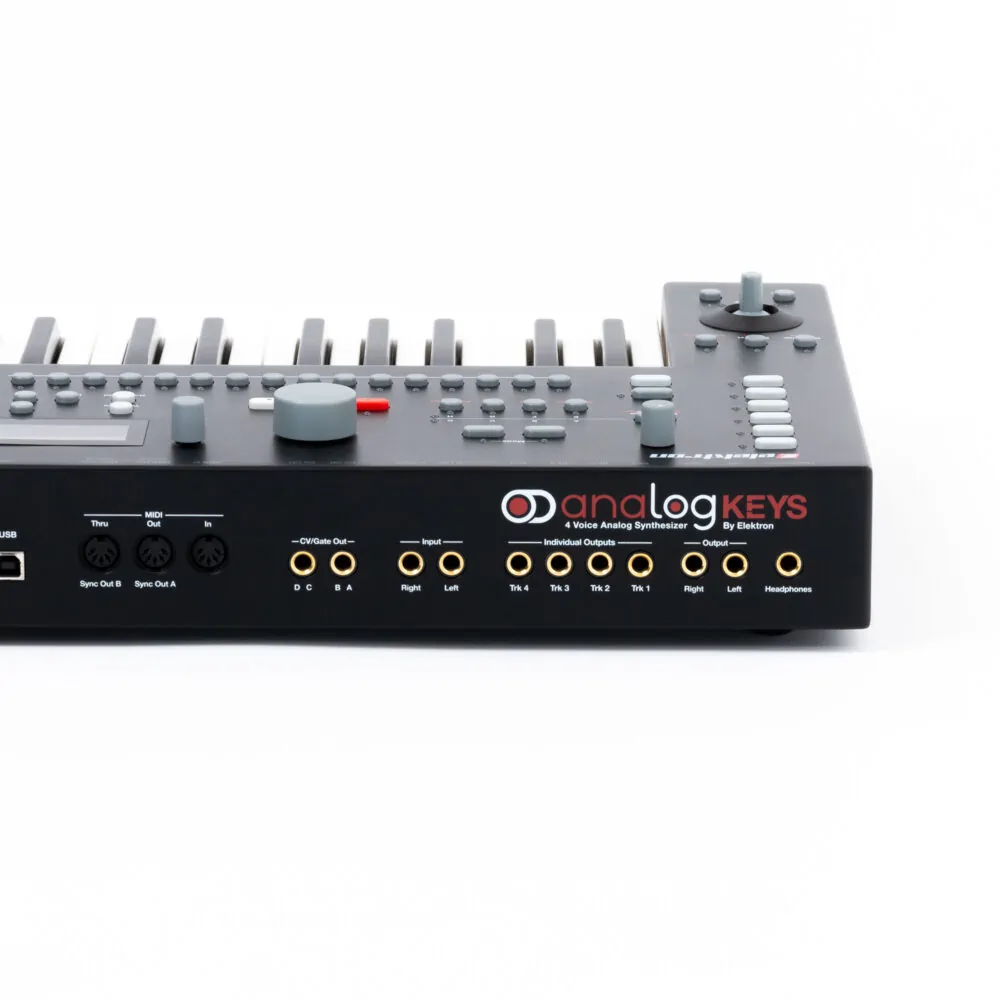 Der Elektron Analog Keys ist ein polyphoner Analog Synthesizer, der mit digitaler Kontrolle eine bisher unerreichte Spielbarkeit ermöglicht. Die Polyphonie des Elektron Analogkeys beträgt bis zu vier Stimmen mit jeweils zwei Sub-Oszillatoren, zwei analogen Oszillatoren, zwei analogen Filtern, einem analogen Overdrive, einer Amp Hüllkurve und zwei LFOs pro Stimme. Die Klaviatur des Elektron Analogkeys umfasst 37 Tasten inklusive Aftertouch.