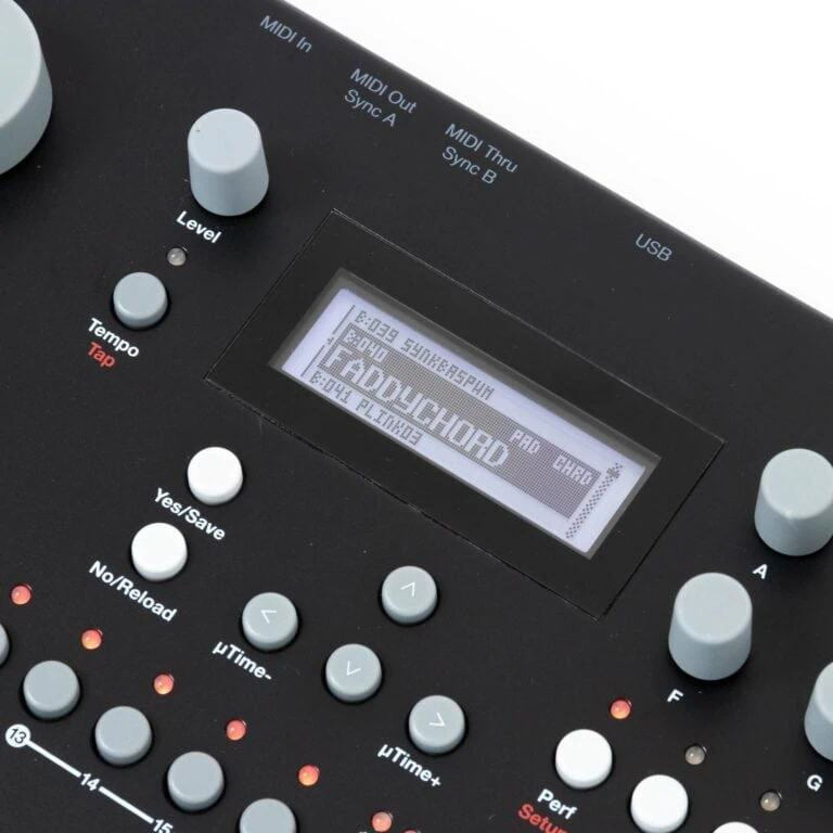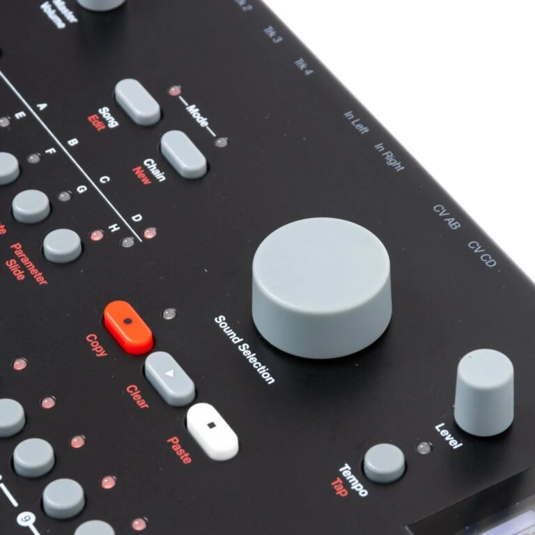 - Ausgänge: 1x MIDI Out (Din 5-pol), 1x CV/Gate Out (Stereo 6,3 mm Klinke), 4x Individual Output (6,3 mm Klinke), 1x Output (Stereo 6,3 mm Klinke), 1x Phones (6,3 mm Klinke)