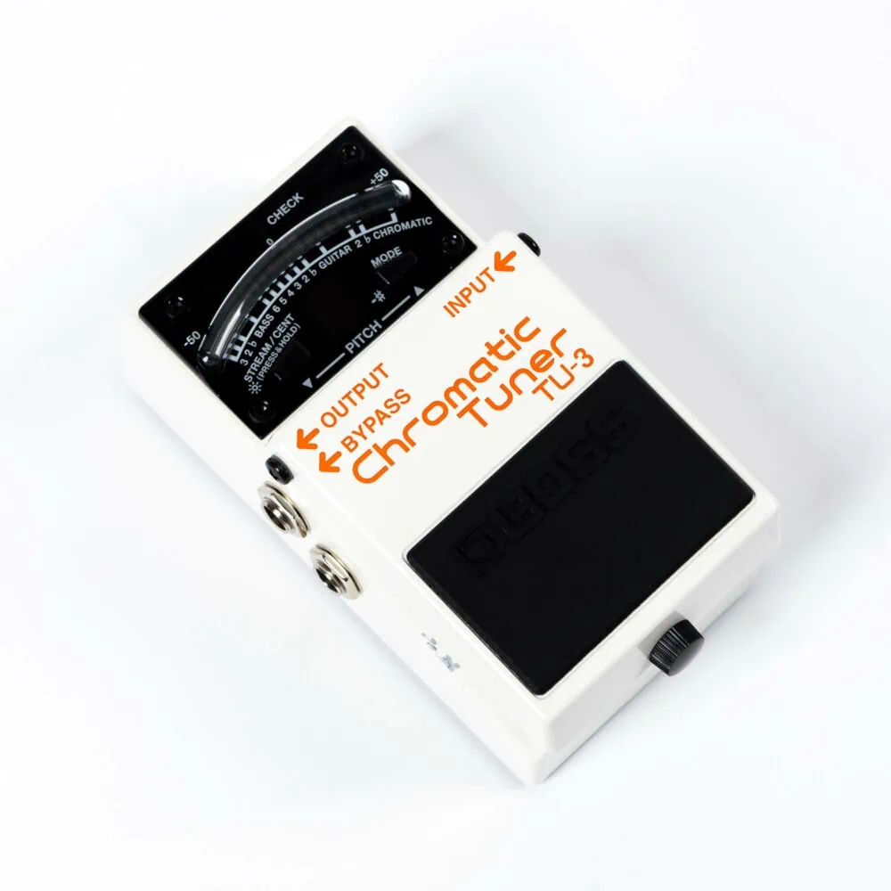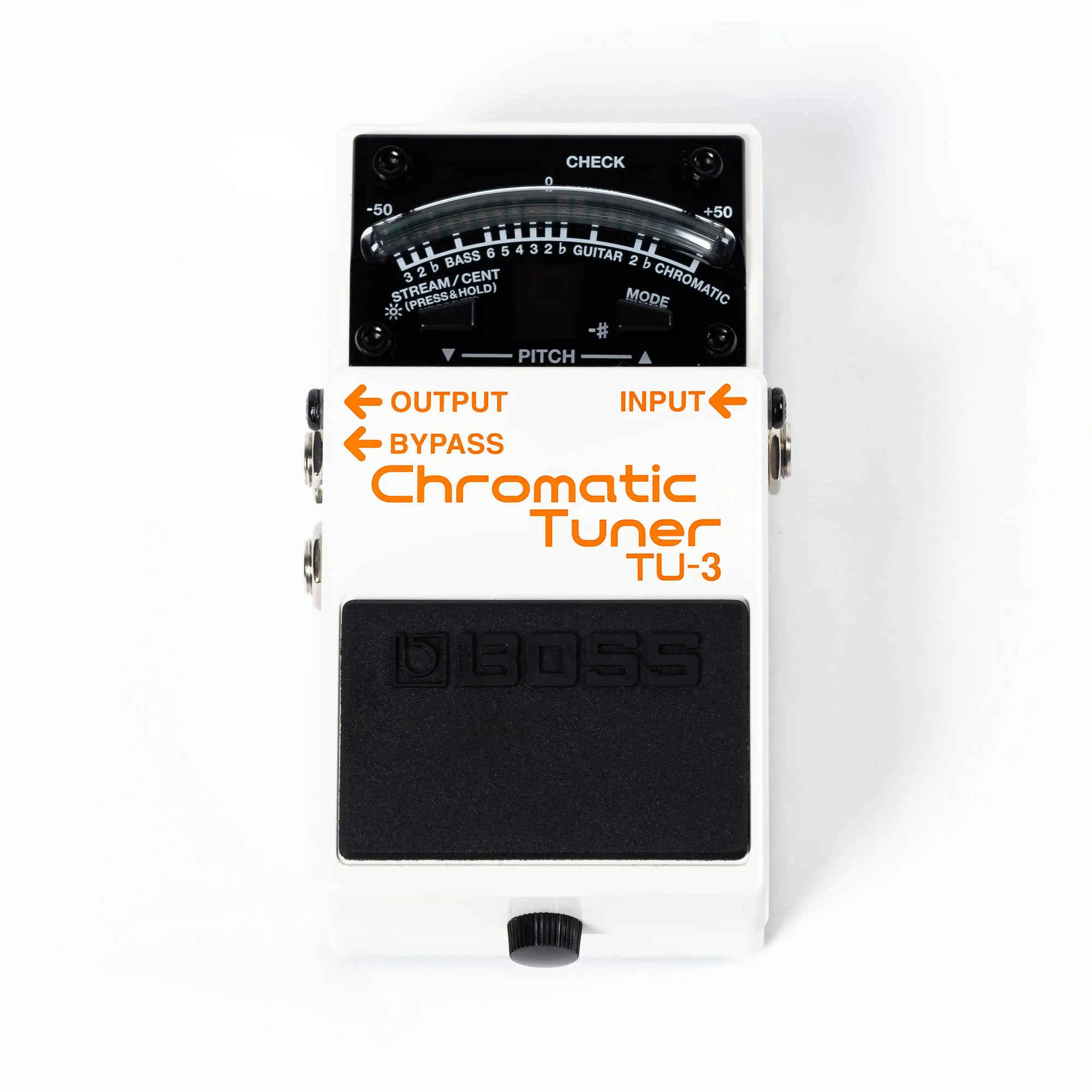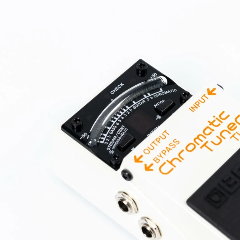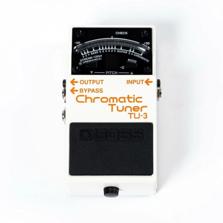Das Boss TU ist ein chromatisches Bodenstimmgerät bei dem du zwischen Cent-Modus (klassiches Stimmgerät) oder Stream-Modus (Lauflicht) wechseln kannst. Außerdem kannst du beim Boss TU 3 nach Notennamen oder Saitennummern stimmen. Das Stimmgerät bringt Accu Pitch und High Brightness Mode.